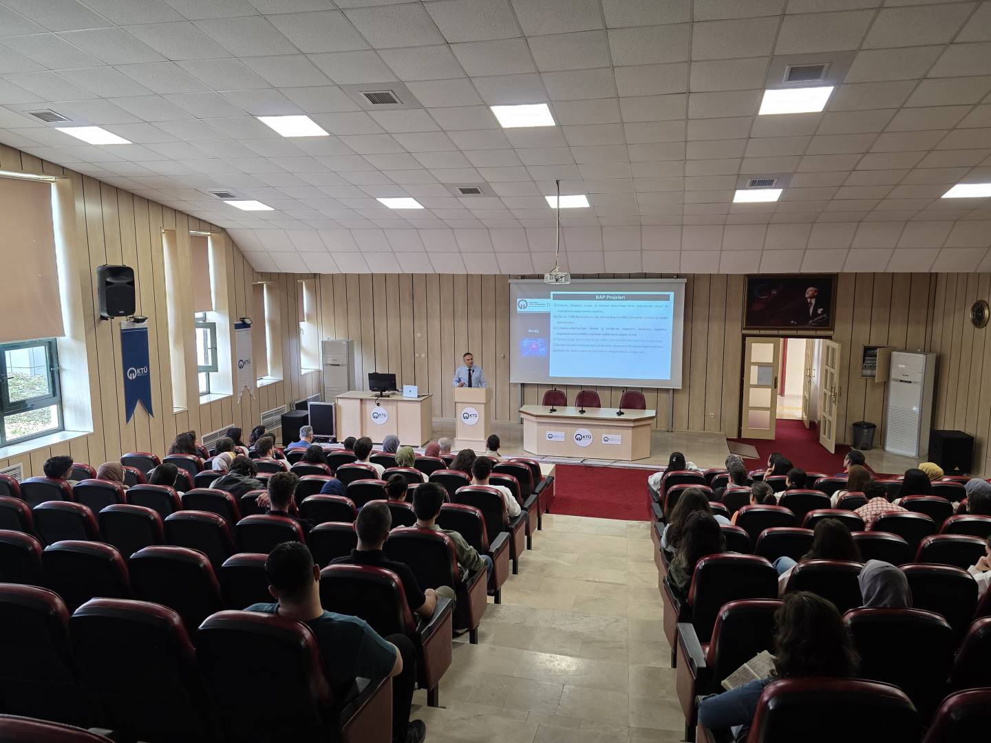Birimimiz tarafından, Fen Bilimleri Enstitüsü Öğrencilerinin katılımıyla 23.05.2025 tarihinde Fen Fakültesi Nazım TERZİOĞLU Amfisinde “Lisansüstü Öğrencilere Yönelik Proje Türleri” konulu bir tanıtım toplantısı gerçekleştirildi. Toplantıda, BAP Koordinatörümüz Prof. Dr. Gökhan APAYDIN, bilimsel araştırma projelerinde yapılan güncel değişiklikler ve başvuru ve değerlendirme süreçleri hakkında katılımcılara kapsamlı bir bilgilendirme sunumu yaptı.