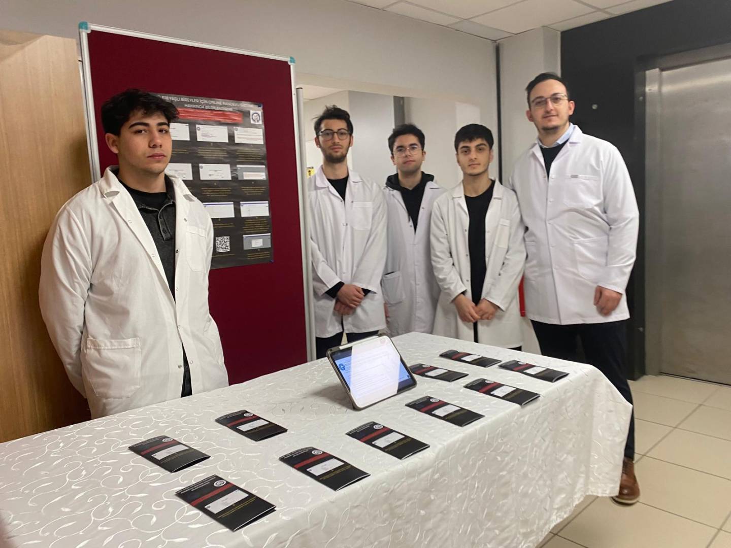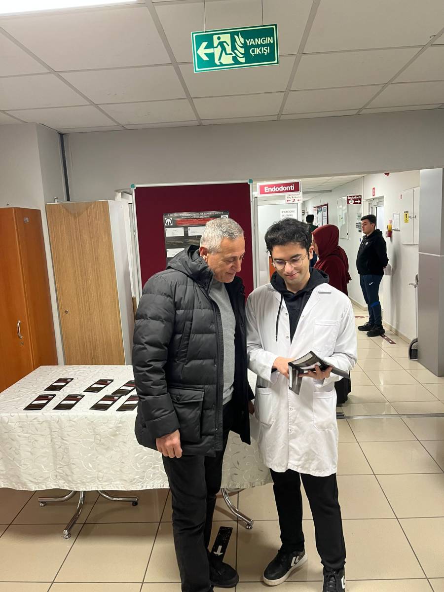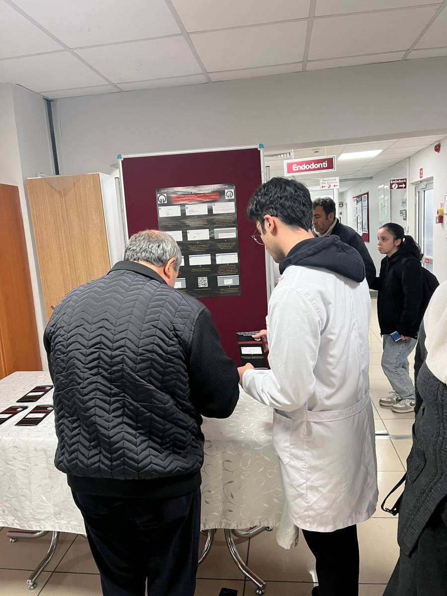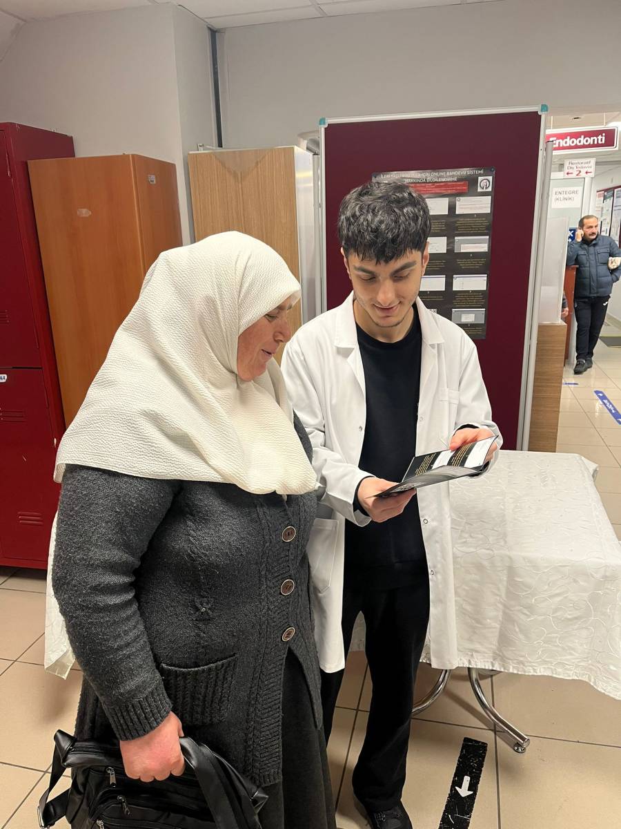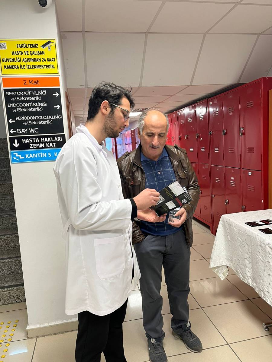 Etkinlik kapsamında öğrencilerimiz Mehmet Akif Karagöz, Ömer Selim Sarıoğlu, Burak Aslan ve Cemil Emir Gülseven tarafından, Restoratif Diş Tedavisi ve Endodonti Anabilim Dalı hasta bekleme alanında kurulan bilgilendirme standı aracılığıyla ileri yaşlı bireylere yönelik olarak online randevu sisteminin kullanımı, randevu alma süreci ve dikkat edilmesi gereken hususlar hakkında bilgilendirmeler yapıldı.