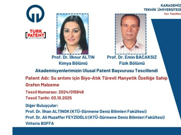 Fakültemiz Fizik Bölümü öğretim üyesi Prof. Dr. Emin BACAKSIZ ve Kimya Bölümü öğretim üyesi Prof. Dr. İlknur ALTIN'ın Ulusal Patent Başvurusu Tescillendi