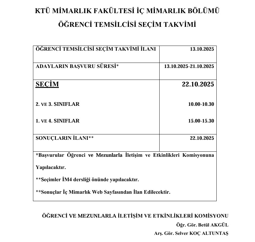 KTÜ İç Mimarlık Bölümüne Yatay Geçiş Yapan Öğrencilerin Dikkatine!