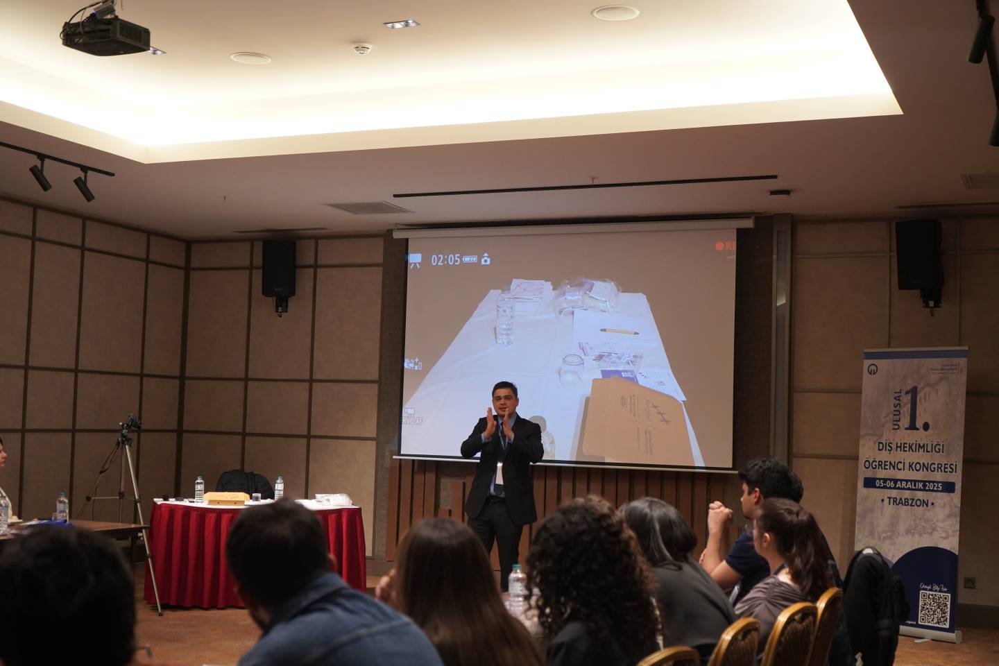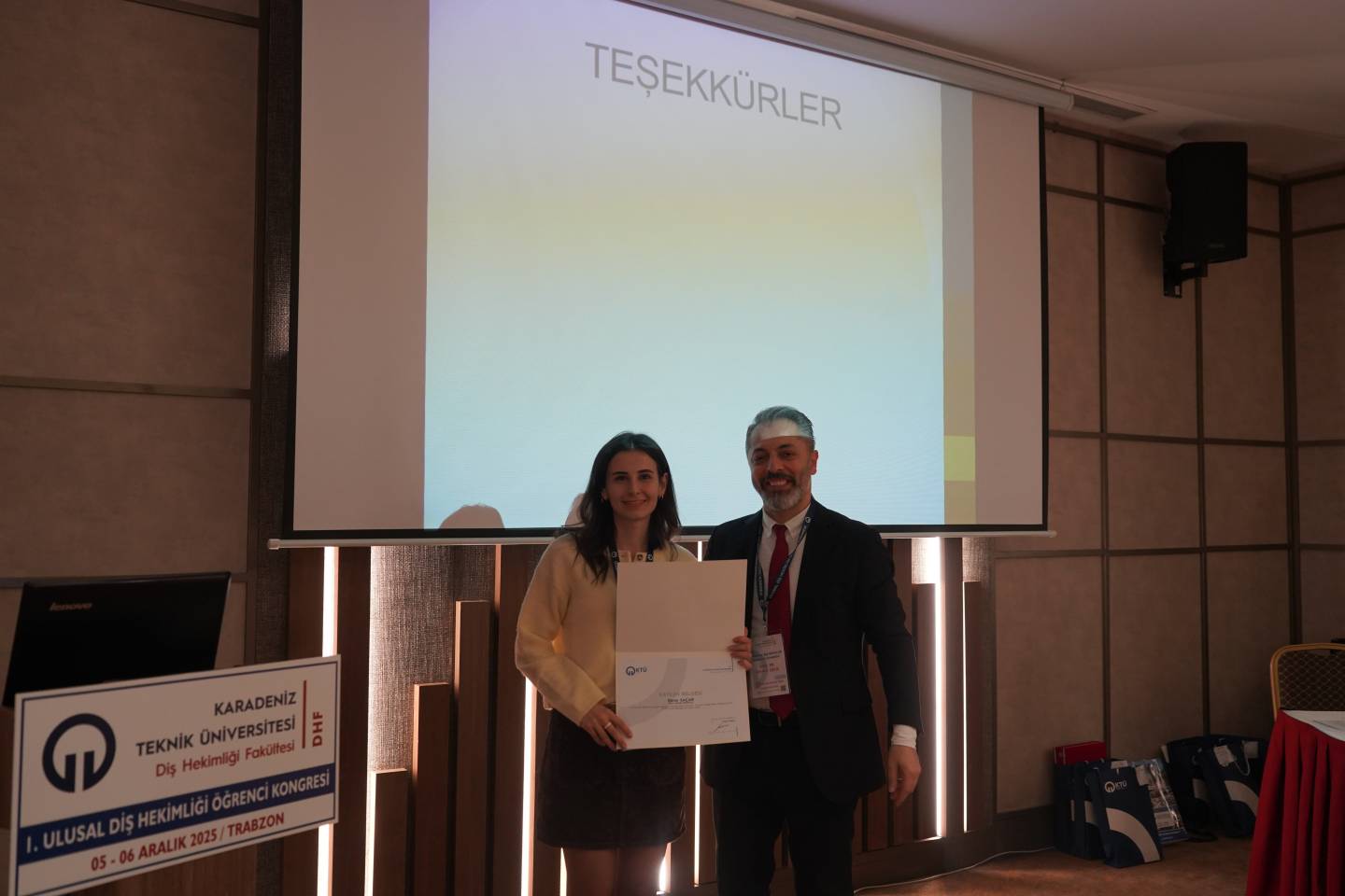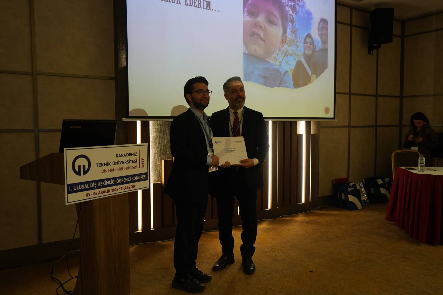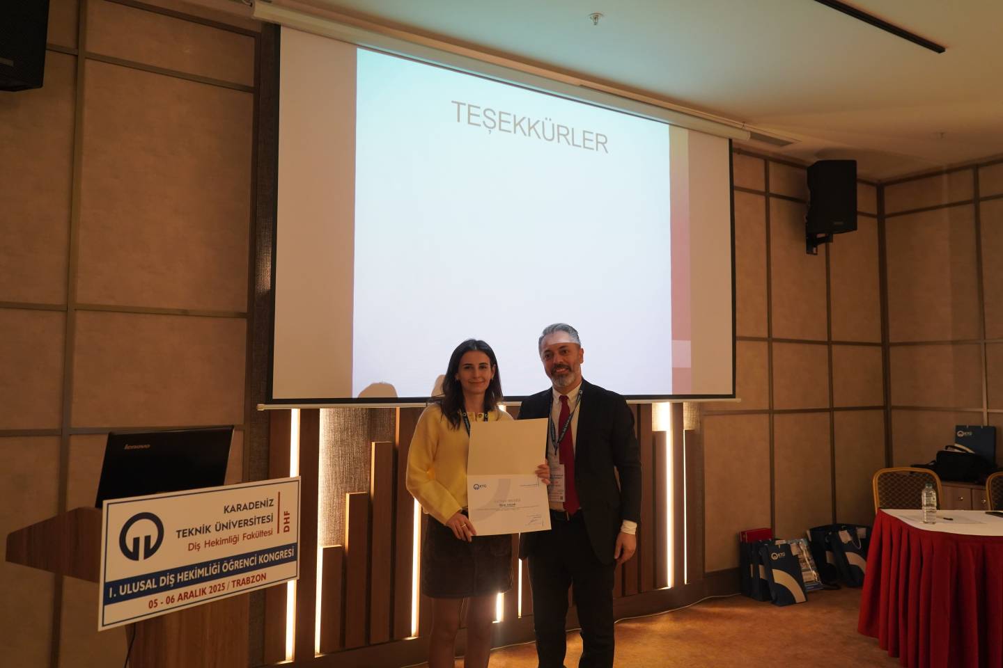 Belge takdim töreni, kongre başkanı ve Fakültemiz Klinik Bilimleri Bölümü Ağız, Diş ve Çene Cerrahisi Anabilim Dalı öğretim üyesi Doç. Dr. Efe Can Sivrikaya tarafından gerçekleştirildi. Doç. Dr. Sivrikaya, öğrencileri özverili çalışmaları ve etkinliğin düzenlenmesine sağladıkları destek nedeniyle tebrik ederek, akademik ve mesleki gelişimlerine katkı sunan bu tür organizasyonlarda aktif rol almanın önemini vurguladı.