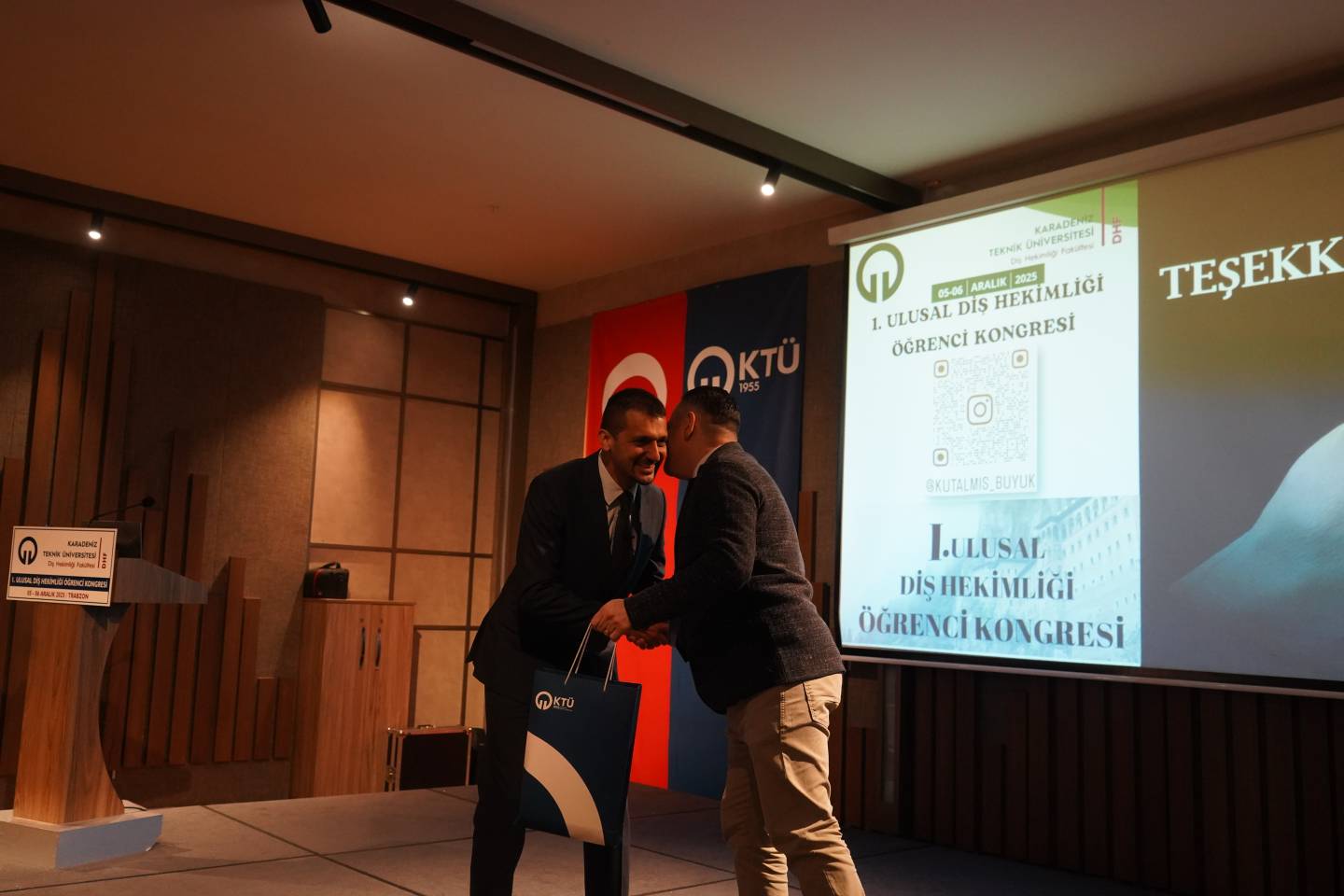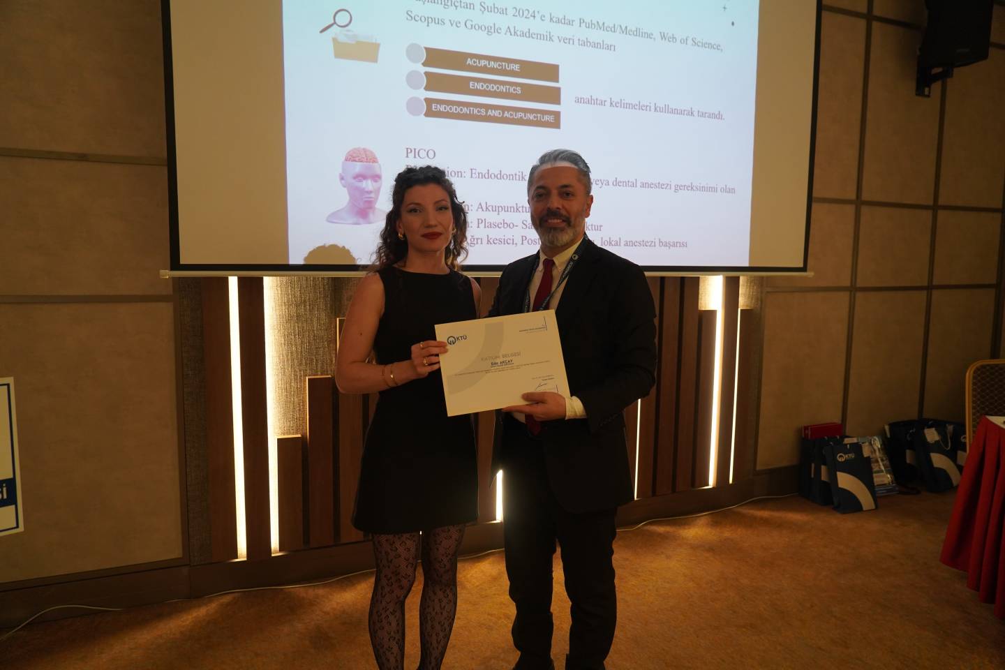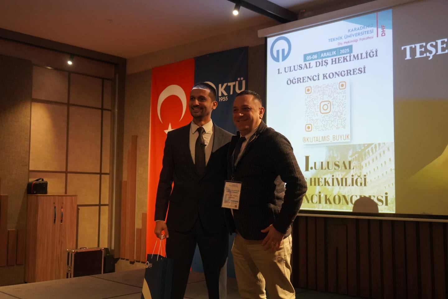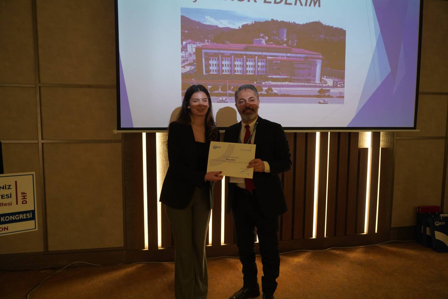 Belge takdim töreni, kongre başkanı ve Fakültemiz Klinik Bilimleri Bölümü Ağız, Diş ve Çene Cerrahisi Anabilim Dalı öğretim üyesi Doç. Dr. Efe Can Sivrikaya tarafından gerçekleştirildi. Doç. Dr. Sivrikaya, öğrencileri özverili çalışmaları ve etkinliğin düzenlenmesine sağladıkları destek nedeniyle tebrik ederek, akademik ve mesleki gelişimlerine katkı sunan bu tür organizasyonlarda aktif rol almanın önemini vurguladı.
