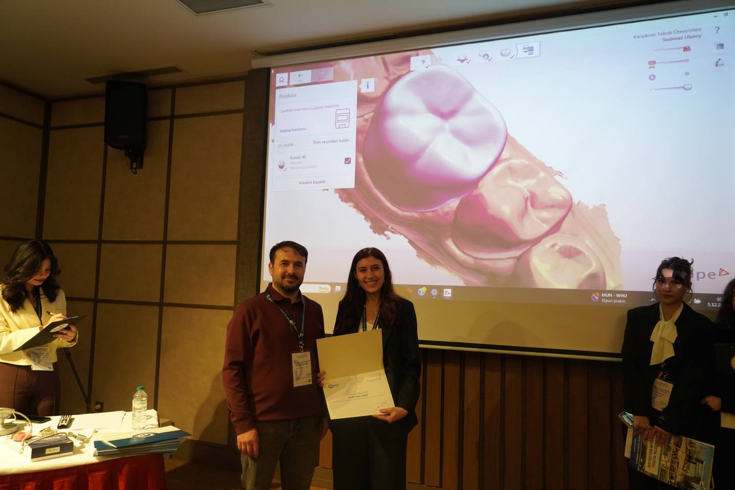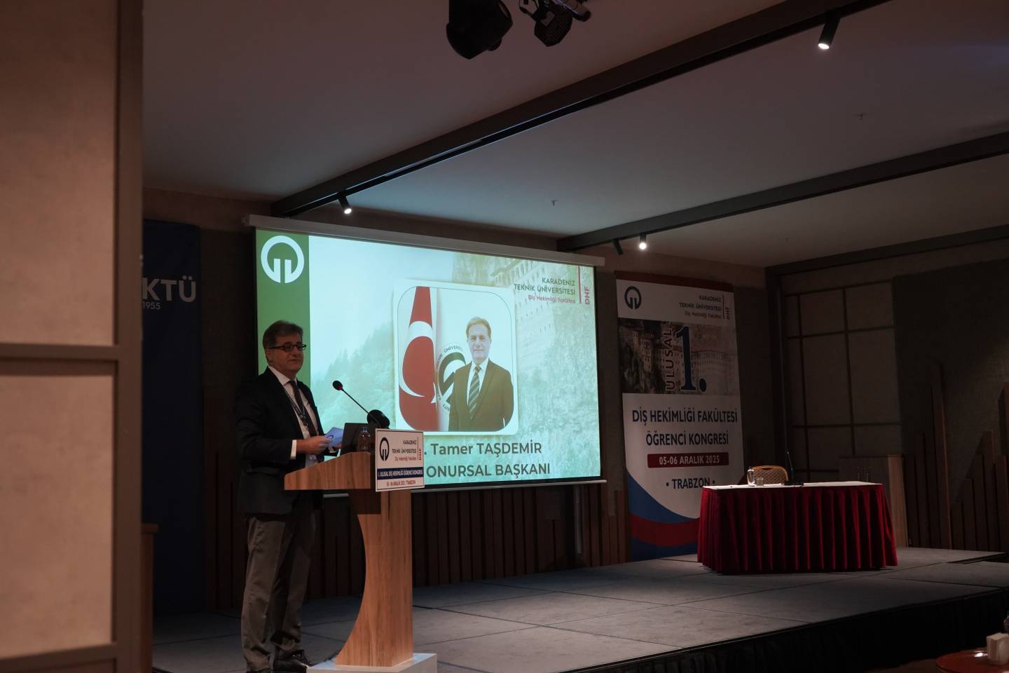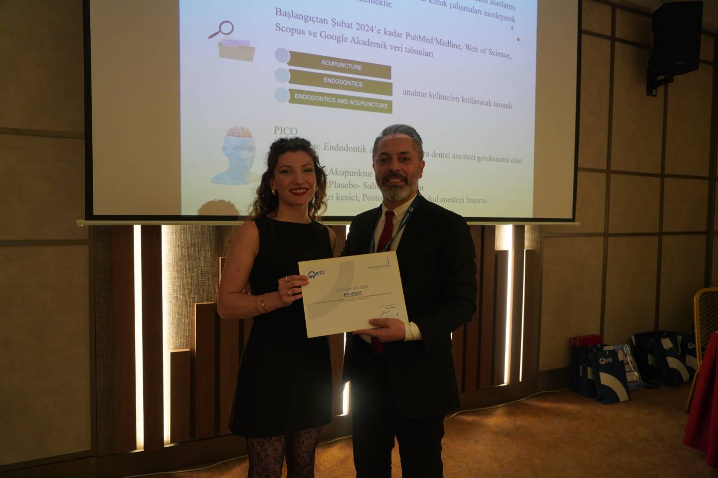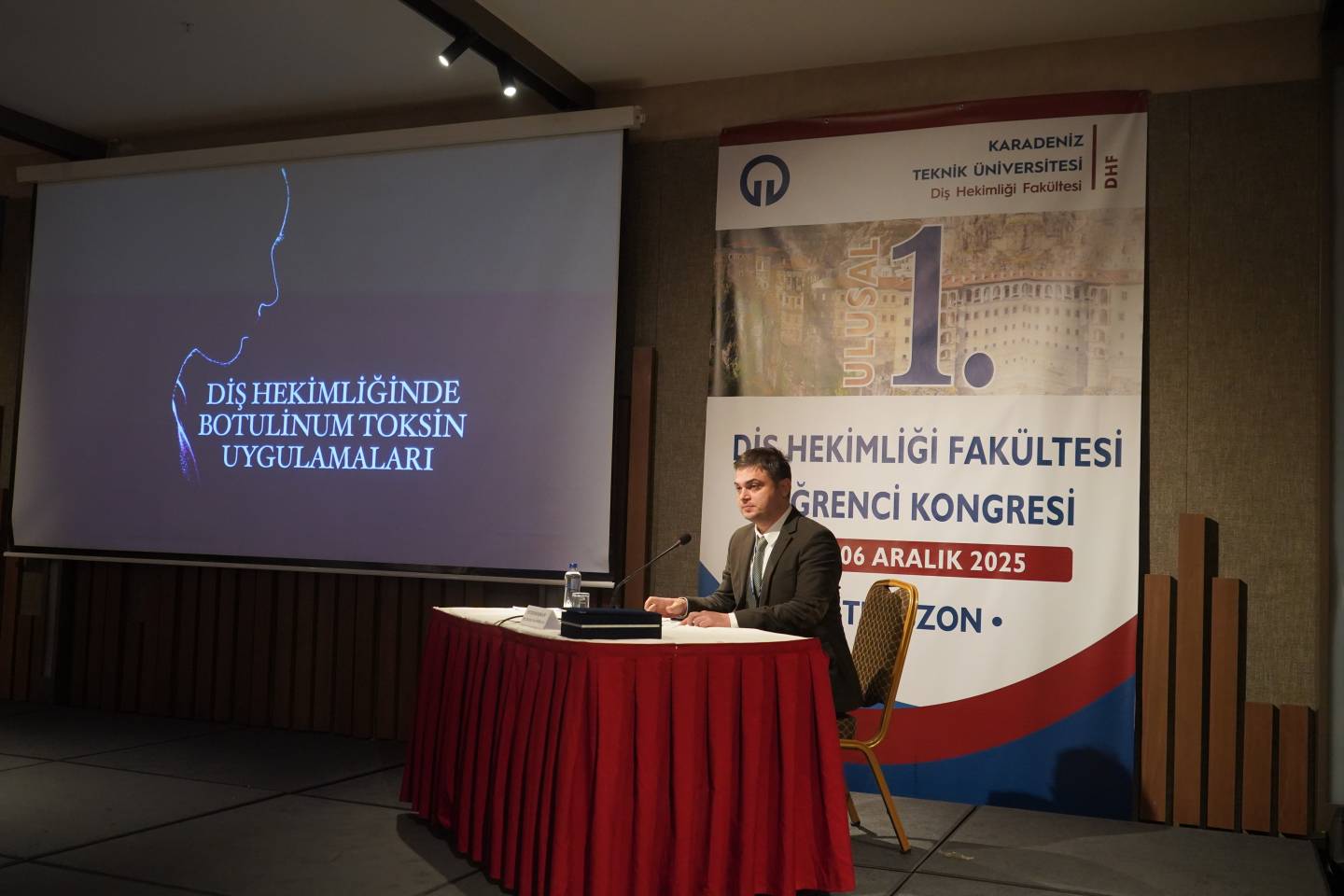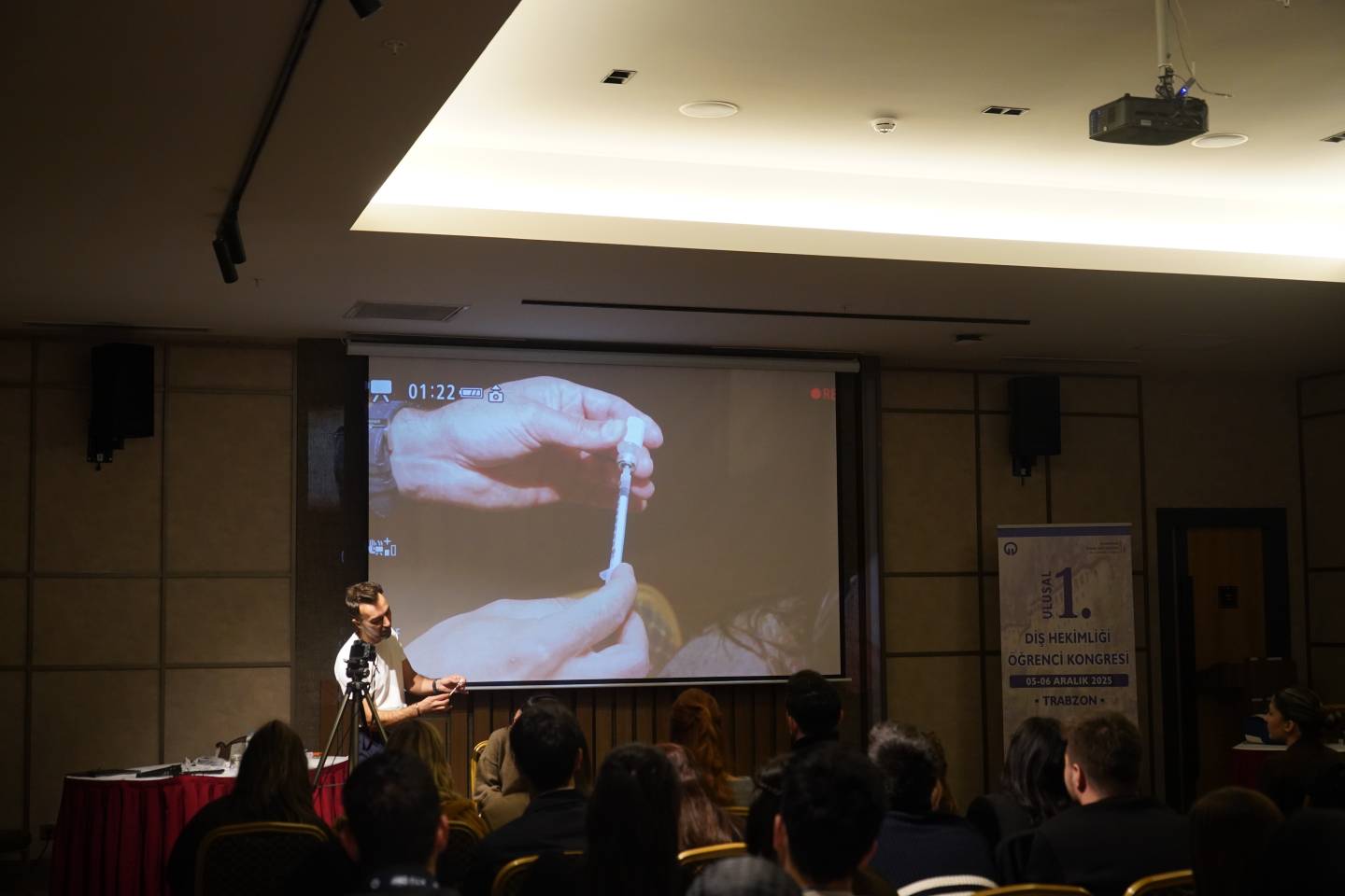 Belge takdim töreni, kongre başkanı ve Fakültemiz Klinik Bilimleri Bölümü Ağız, Diş ve Çene Cerrahisi Anabilim Dalı öğretim üyesi Doç. Dr. Efe Can Sivrikaya tarafından gerçekleştirildi. Doç. Dr. Sivrikaya, öğrencileri özverili çalışmaları ve etkinliğin düzenlenmesine sağladıkları destek nedeniyle tebrik ederek, akademik ve mesleki gelişimlerine katkı sunan bu tür organizasyonlarda aktif rol almanın önemini vurguladı.