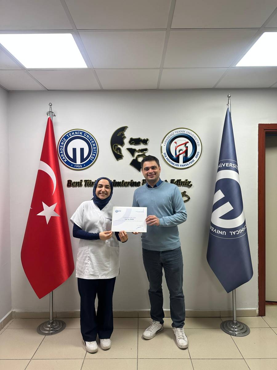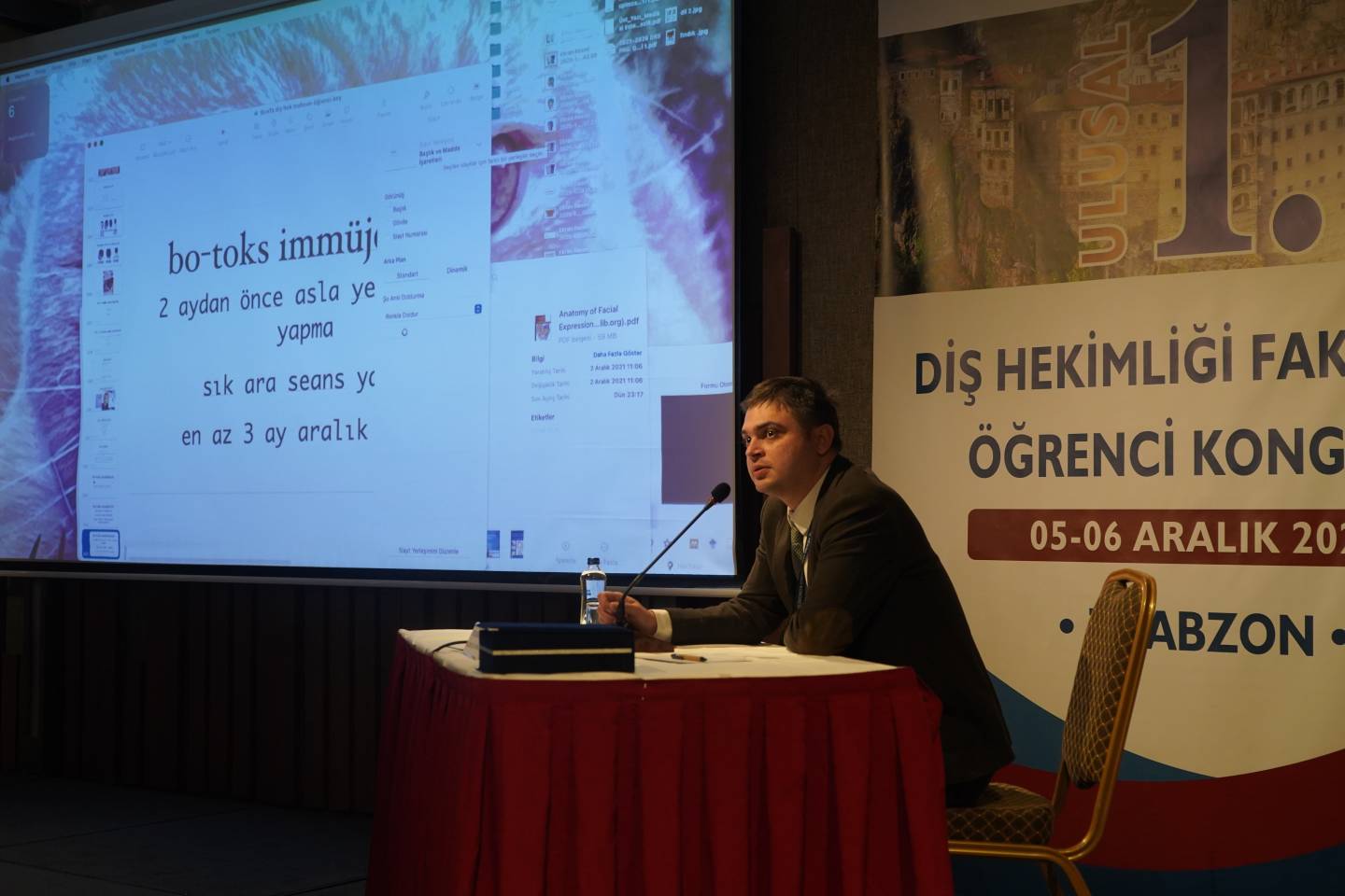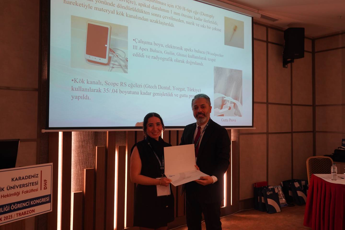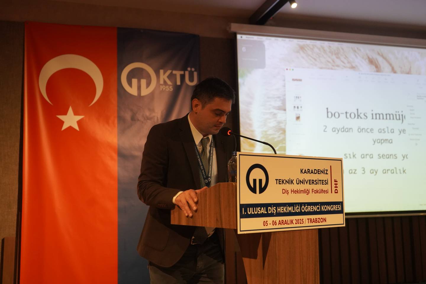 Belge takdim töreni, kongre başkanı ve Fakültemiz Klinik Bilimleri Bölümü Ağız, Diş ve Çene Cerrahisi Anabilim Dalı öğretim üyesi Doç. Dr. Efe Can Sivrikaya tarafından gerçekleştirildi. Doç. Dr. Sivrikaya, öğrencileri özverili çalışmaları ve etkinliğin düzenlenmesine sağladıkları destek nedeniyle tebrik ederek, akademik ve mesleki gelişimlerine katkı sunan bu tür organizasyonlarda aktif rol almanın önemini vurguladı.