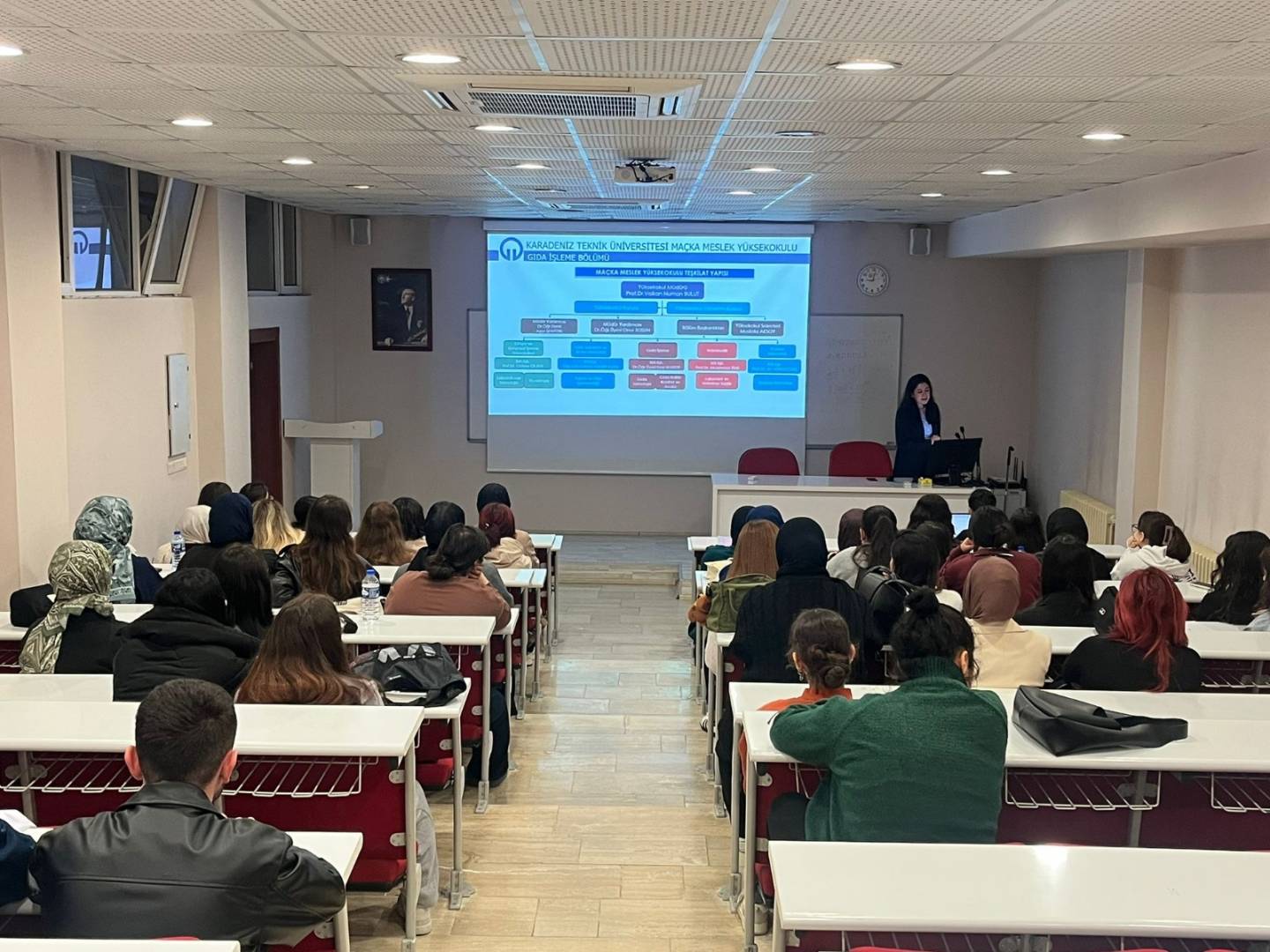 2025-2026 Eğitim-Öğretim yılında Meslek Yüksekokulumuzdaki bölümlere yerleşen öğrenciler için Oryantasyon ve Bilgilendirme toplantıları düzenlenmiştir. Tüm bölümlerimizdeki 1. sınıf öğrencilerin katılımlarıyla gerçekleşen sunumlarda Karadeniz Teknik Üniversitesi ve Maçka Meslek Yüksekokulunun tanıtımı ve kendi bölümleriyle ilgili sunumlar yapılmıştır.