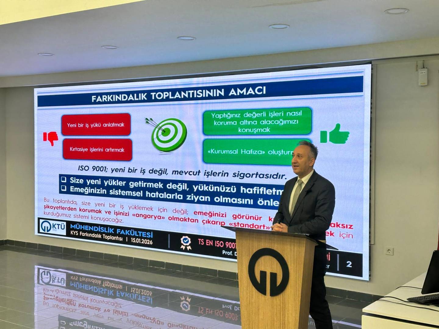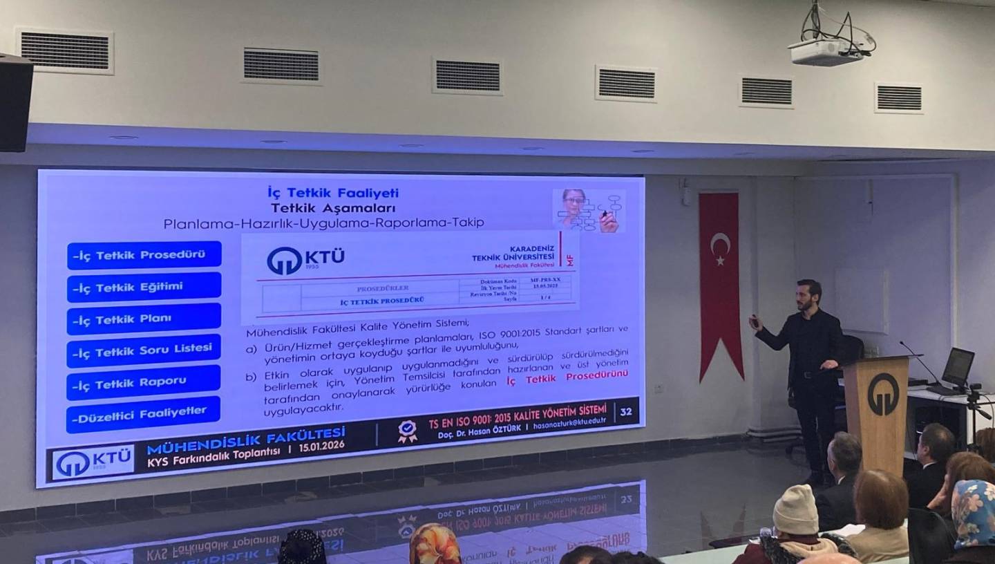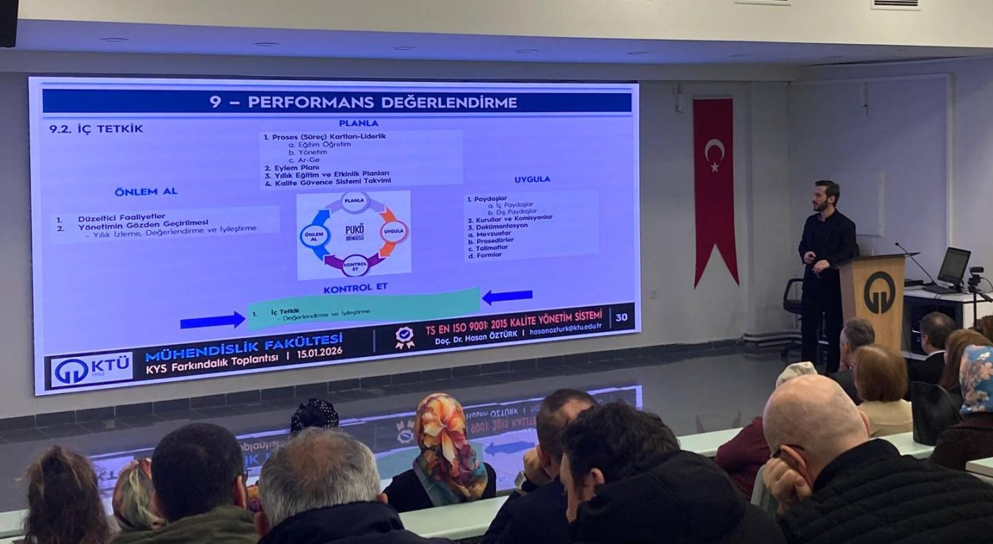 Mühendislik Fakültesi öğretim üyelerine Kalite Yönetim Sistemi farkındalık eğitimi verilmiştir.