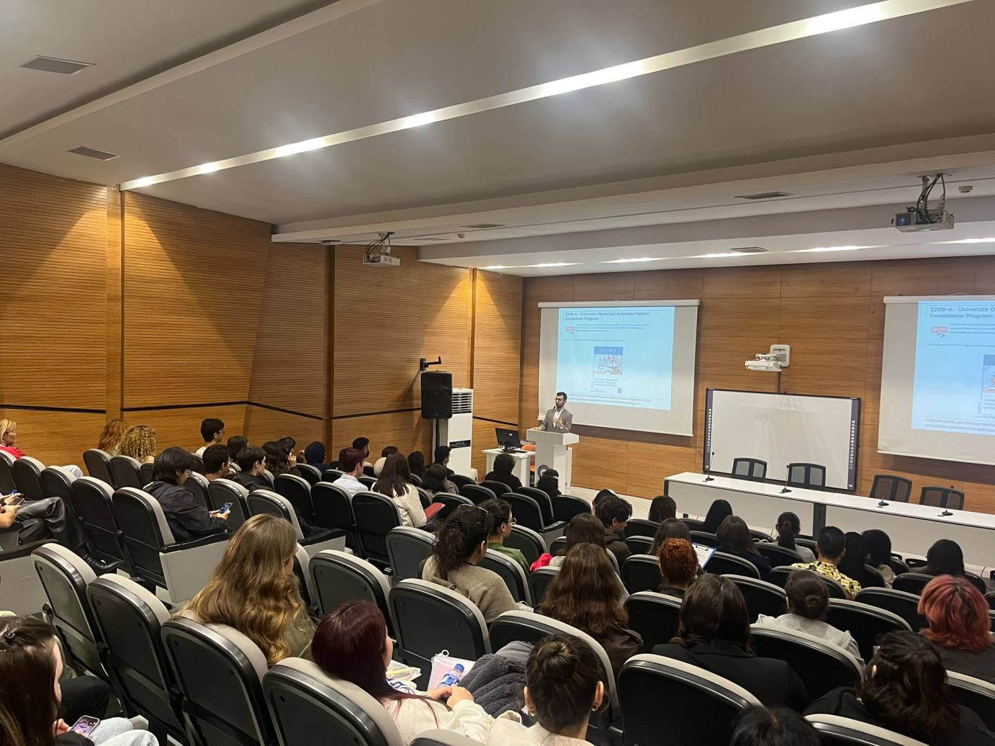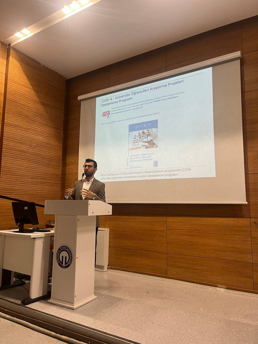 07.10.2025 tarihinde saat 14:00'da Burs ve Tübitak Proje Bilgilendirme Toplantısı komisyon üyesi hocalarımız tarafından sunulmuş, lisans ve lisansüstü öğrencilerimizin de katılımıyla verimli bir şekilde gerçekleştirilmiştir.