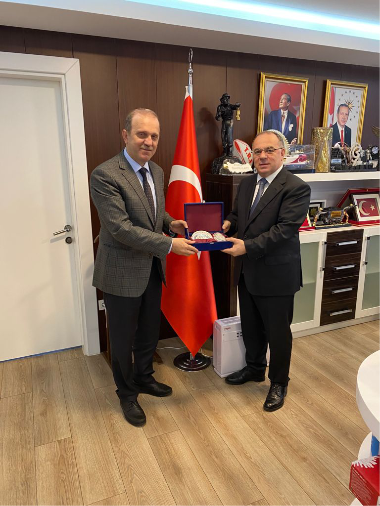 Rektörümüz Prof. Dr. Hamdullah ÇUVALCI, Enerji ve Tabii Kaynaklar Bakan Yardımcısı ve aynı zamanda Üniversitemizde Öğretim Üyesi olarak görev yapmış olan Prof. Dr. Şeref KALAYCI’yı, makamında ziyaret etti.