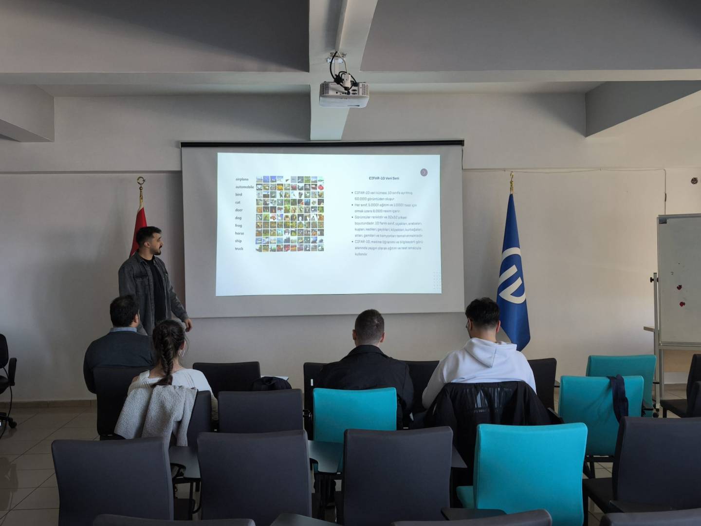 Seminerde CNN mimarilerinin temelleri, Transfer Learning yaklaşımı ve YOLO modeline giriş gibi modern derin öğrenme yöntemleri üzerine giriş düzeyinde bilgilendirmeler yapıldı. Katılımcılar, güncel yapay zekâ teknolojilerinin uygulama alanlarını ve öğrenme kaynaklarını örneklerle tanıma fırsatı buldu.