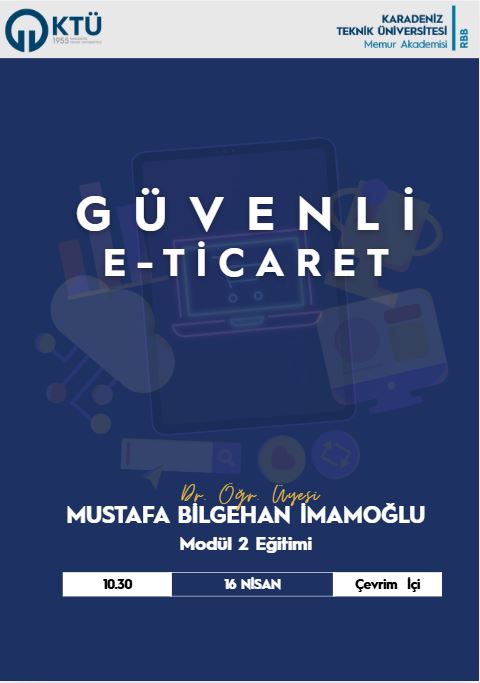 Karadeniz Teknik Üniversitesi İktisadi ve İdari Bilimler Fakültesi öğretim üyesi Dr. Öğr. Üyesi Mustafa Bilgehan İMAMOĞLU tarafından tüm personelimize yönelik  “Güvenli E - Ticaret” konulu eğitim MODÜL-2 eğitim programının son eğitimi olarak 16.04.2026 tarihinde saat 10.30’da KTÜ Uzaktan Eğitim Sistemi üzerinden düzenlenecektir.