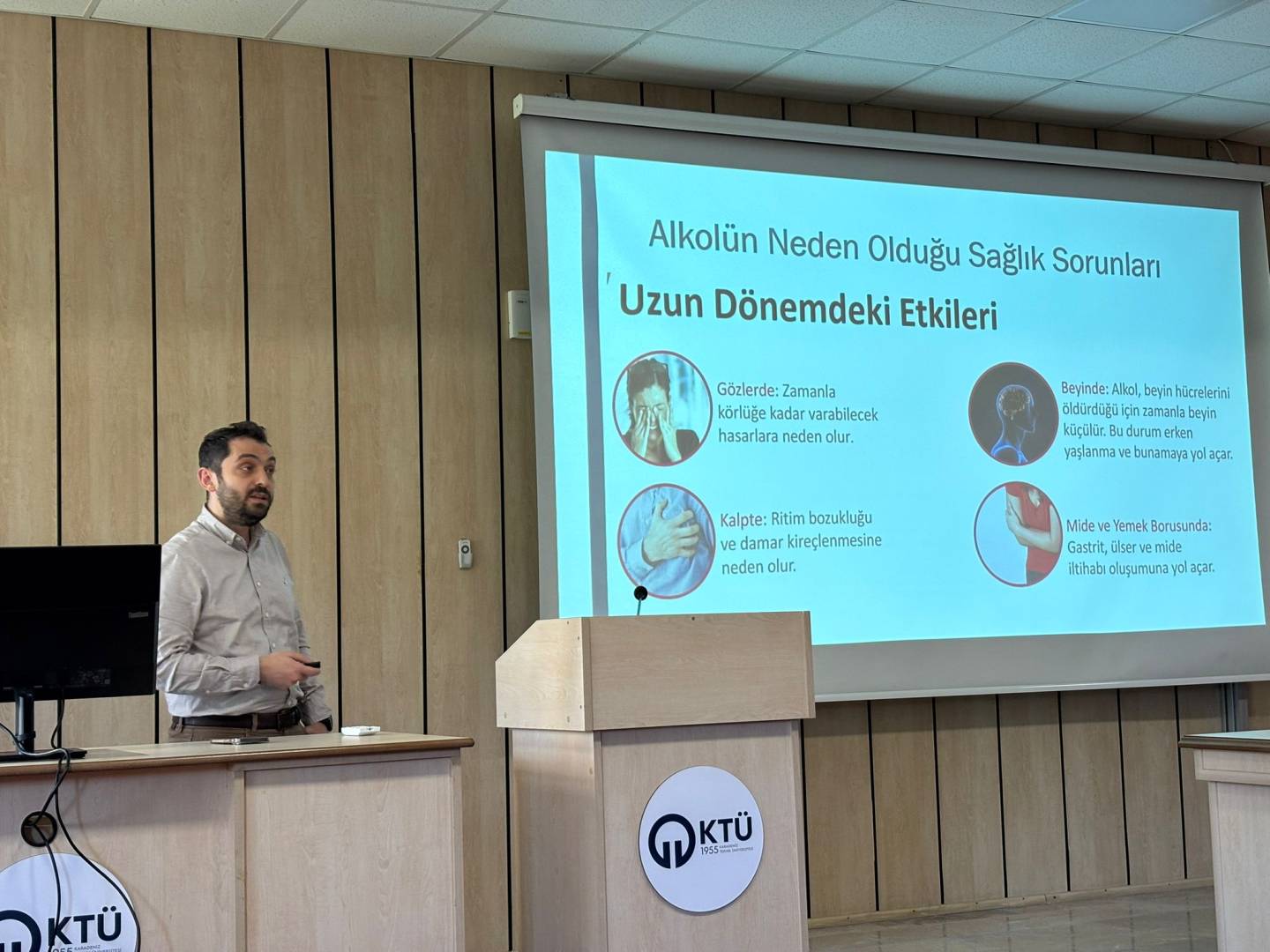 Eğitim sürecine değer katan ve farkındalık oluşturan KTÜ Genç Yeşilay Topluluğu bünyesinden İrem Sultan Akyüz, Talha Berk ve Ömer Fevzi Aslan da sürece katkı sağladı, eğitim interaktif bir ortamda gerçekleştirildi ve doğrudan katılımcıların soruları yanıtlandı.
