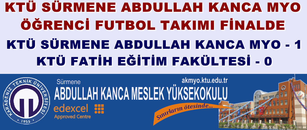 KTÜ 35. Spor Şöleni futbol maçında, öğrenci futbol takımımız KTÜ Fatih Eğitim Fakültesi futbol takımını 1-0 mağlup ederek finale yükseldi.