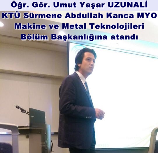 Öğr. Gör. Emre Deniz Yalçın’ın Bölüm Başkanlığından ayrılması ile boşalan Makine ve Metal Teknolojileri Bölüm Başkanlığına, Meslek Yüksekokulumuz Öğretim Elemanlarından Öğr. Gör. Umut Yaşar Uzunali atandı.