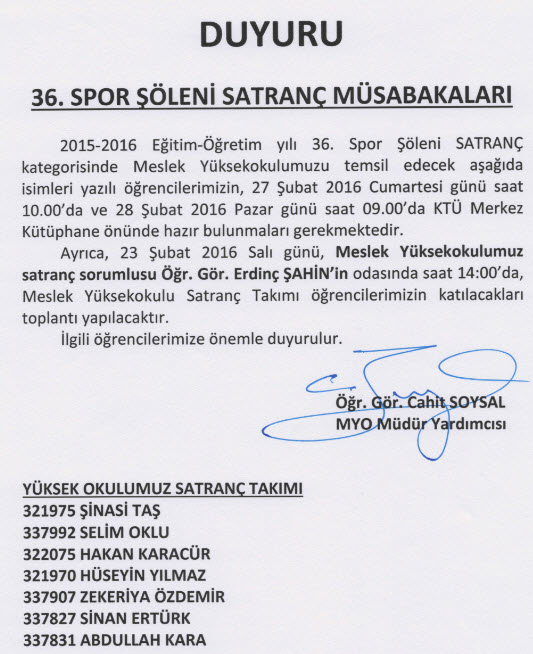 Satranç Duyurusu