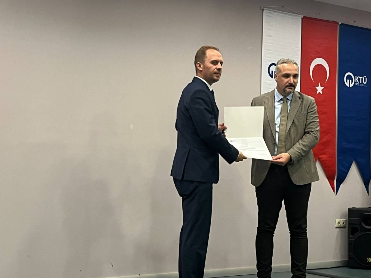 Öğr. Gör. Dr. Dursun MERİÇ hocamıza: "Metalik Şerit Sürekli Elyaf Takviyeli Hibrit Kompozit Tüp Üretim Yöntemi" başlıklı buluşundan Dolayı Teşekkür Belgesi Takdimi Yapıldı.