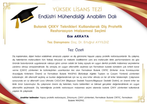 Anahtar kelimeler: Yapay protetik restorasyon, Zirkonyum, ÇKKV yöntemleri, Fermatean Bulanık CRITIC, Fermatean