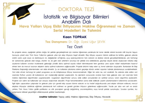 Anahtar kelimeler: Yapay zekâ, Makine öğrenmesi, Ekip İhtiyacı, Havacılık