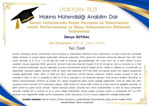 Sunulan çalışmada, benzin motorlarında emme havasına su eklenmesinin (EHSE’nin) motor performansı ve eksoz emisyonları üzerindeki