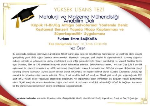 Anahtar kelimeler: Asimetrik Süperkapasitör, Genişletilebilir Grafit, Nikel Kobalt Fosfit, Kapasitans, Enerji ve Güç Yoğunluğu