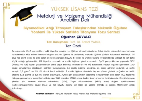 Anahtar kelimeler: Titanyum, Titanyum talaşı, Metalik toz, Mekanik öğütme, TiO2