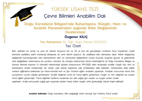 Anahtar kelimeler: Doğu Karadeniz, İklim değişikliği, Mann Kendall, Şen Yöntemi, Trend analizi