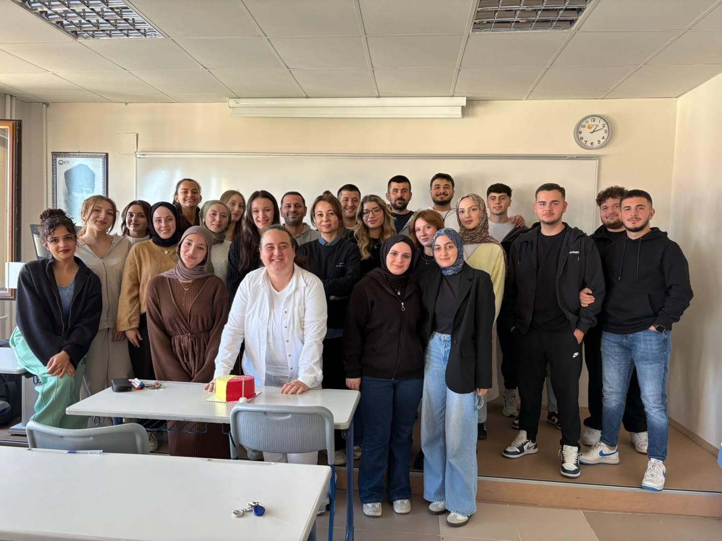 Yönetim ve Organizasyon Bölümü Lojistik Programı 2. sınıf öğrencileri ile idarî personellerimiz Asiye GORAL ve Kadriye ÇEBİ tarafından Öğr. Gör. Dr. Damla EKER'e sürpriz doğum günü kutlamaları yapıldı. Yönetim ve Organizasyon Bölüm Başkan Yardımcısı Öğr. Gör. Sevgi DEĞER'in de eşlik ettiği organizasyonlarda karşılıklı sağlık, mutluluk ve başarı dileklerinde bulunuldu.