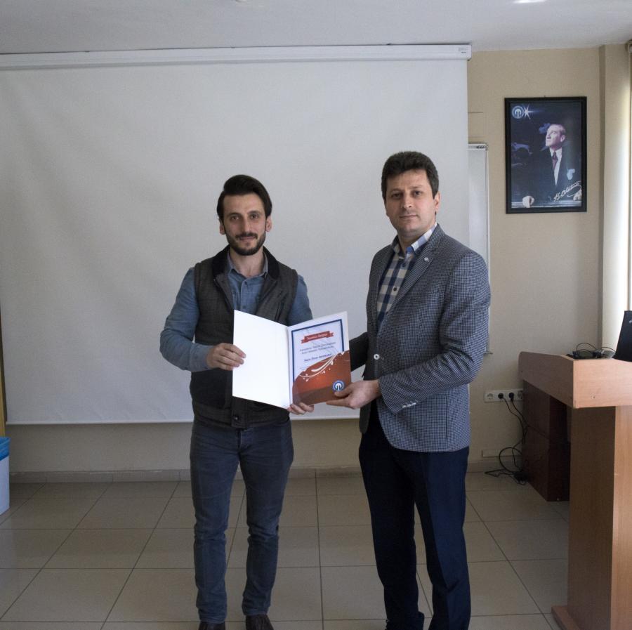 Okulumuzda 25 Nisan 2019 Perşembe günü Saat 11.00'de teknik resim salonunda Trabzon İŞKUR Müdürlüğü iş ve meslek danışmanı Ömer BAYBURT tarafından ''Etkili Öz Geçmiş Hazırlama ve Mülakat Teknikleri Eğitimi'' Yapıldı.Eğitime 60 öğrenci katıldı. Eğitim sonunda Meslek Yüksekokulu Müdür Yardımcısı Öğr.Gör.Dr. Hasan ÖZTÜRK tarafından iş ve meslek danışmanı Ömer BAYBURT'a teşekkür belgesi takdim edildi.