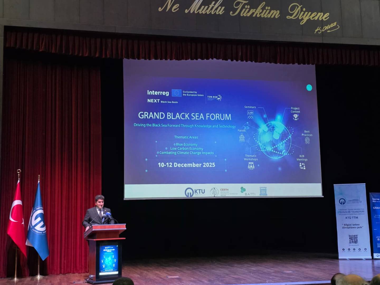 Karadeniz Teknik Üniversitesi ev sahipliğinde, Teknoloji Transfer Merkezi (KTÜ TTM) koordinasyonunda 10–12 Aralık 2025 tarihleri arasında Prof. Dr. Osman Turan Kongre ve Kültür Merkezi’nde düzenlenen Büyük Karadeniz Forumu (Grand Black Sea Forum) kapsamında, Bilimsel Araştırma Projeleri Koordinasyon Birimi (BAP) olarak açılan stantta akademisyenlerimiz ve araştırmacılarımızla bir araya gelindi. Bilgi, teknoloji ve iş birliği temasıyla düzenlenen forumda Karadeniz’in geleceğine yönelik güncel başlıklar ele alındı.