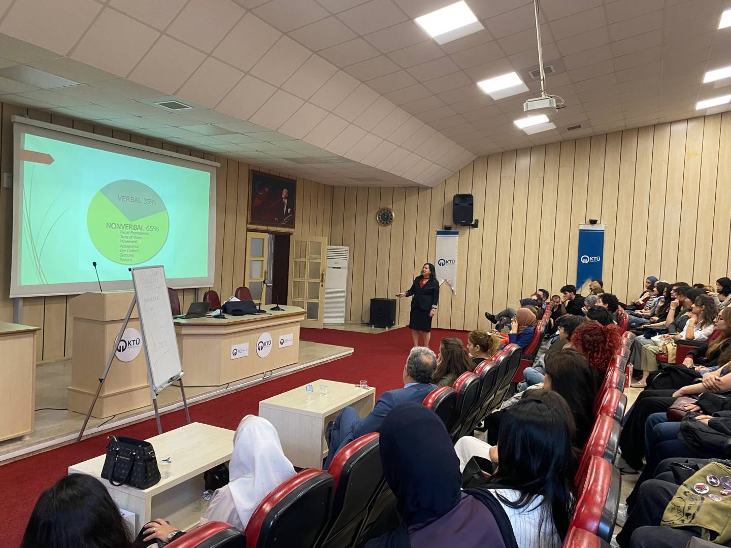 Prof. Dr. Tunaboylu, iletişimde sıkça yaşanan kopuklukların nedenlerini örneklerle açıklarken, öğrenciler de derse interaktif ve katılımlı bir şekilde eşlik ederek canlı bir tartışma ortamı oluşturdu. Etkinlik sonunda Bölüm Başkanımız Prof. Dr. M. Naci Kayaoğlu, Prof. Dr. Tunaboylu’na teşekkür belgesi ve hediyeler takdim etti. Prof. Dr. M. Naci Kayaoğlu ayrıca, “Eğitimi dört duvarın ötesine taşıyarak öğrencilerimizi farklı iklim ve platformlarda buluşturmaya devam edeceğiz” sözleriyle bölümün vizyonunu paylaştı.