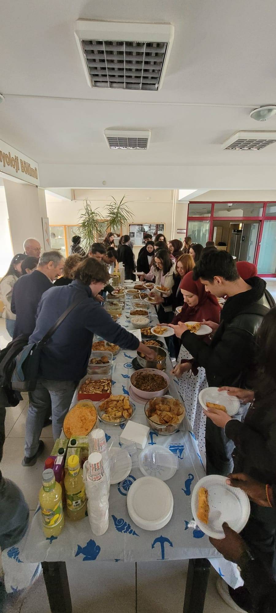Bölümümüz öğretim üyeleri ve elemanları kendi elleriyle hazırladıkları ikramlıkları öğrencilerimize ikram ederek payştılar ve öğrencilerimiz severek yediler. Bölümümüz çalışanları, öğretim üyeleri ve öğrencilerimizin bir araya geldiği etkinlikte, sohbetin yanı sıra bölümümüzün önünde bir dilek ağacı hazırlandı.