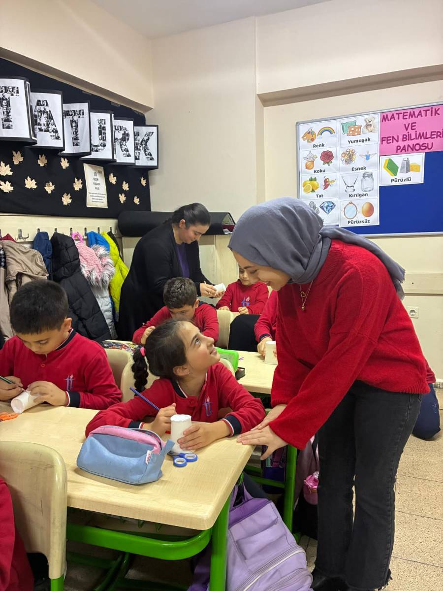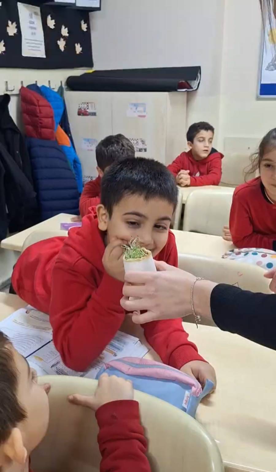 Ticaret İlkokulu öğrencileri ile bir araya gelinen etkinlikte, çocuklara doğa sevgisini aşılamak ve sorumluluk bilincini geliştirmek amacıyla chia tohumu ile "Çim Adam" yapımı gerçekleştirilmiştir. Minik öğrencilerin büyük bir heyecanla katıldığı bu atölye çalışmasında, bitkilerin büyüme süreci uygulamalı olarak anlatılmıştır.