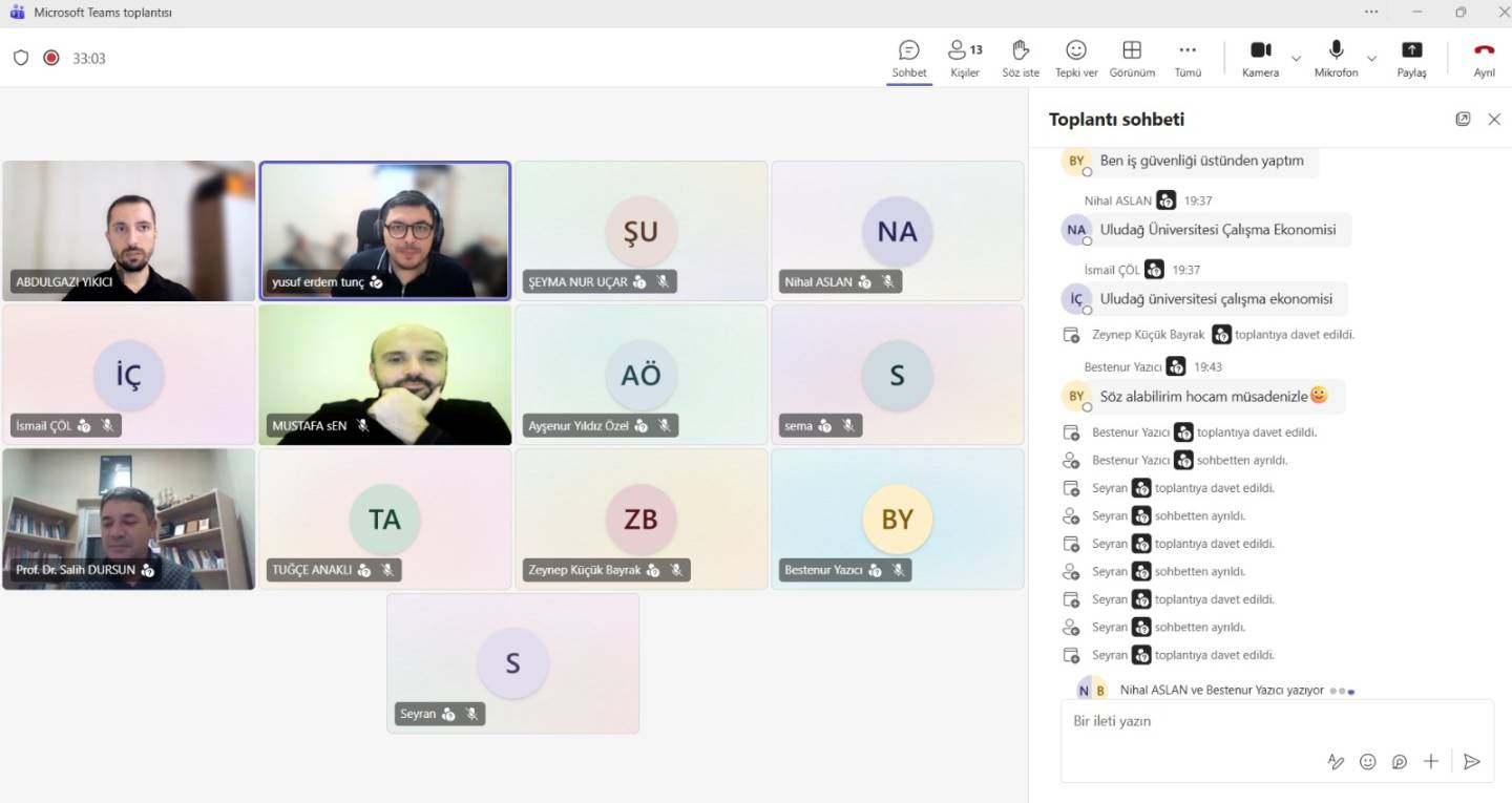 Çalışma Ekonomisi ve Endüstri İlişkileri Bölümü olarak; mezunlarımızla iletişimimizi güçlendirmek, güncel konular hakkında görüş alışverişinde bulunmak ve iş birliği imkanlarını geliştirmek amacıyla çevrim içi bir toplantı gerçekleştirdik.