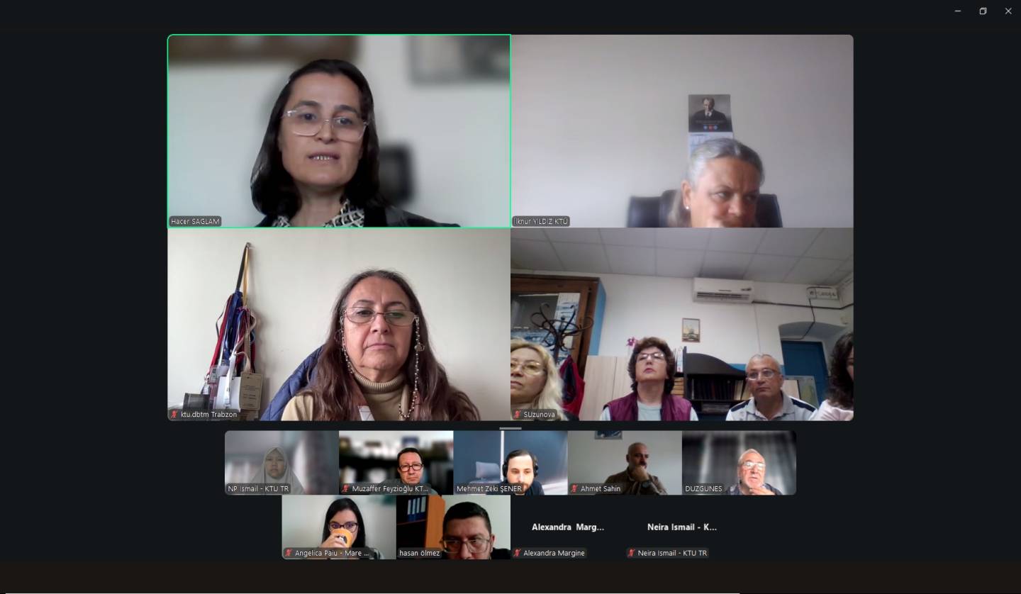 Toplantıya KTU SDBF personellerden proje koordinatörü Prof.Dr. Hacer SAĞLAM, Prof. Dr. Fatma TELLİ KARAKOÇ, Prof.Dr. Coşkun ERÜZ, Prof.Dr. Ali Muzaffer FEYZİOĞLU, Doç.Dr. Rafet Çağrı ÖZTÜRK, Dr.Öğr.Üy. İlknur YILDIZ, Dr.Öğr.Üy. Ahmet ŞAHİN, Doç.Dr. Hasan ÖLMEZ, Dr.Öğr.Üy. Mehmet Zeki ŞENER, ve Dr. Neira Purwanty ISMAIL tarafından katıldı.