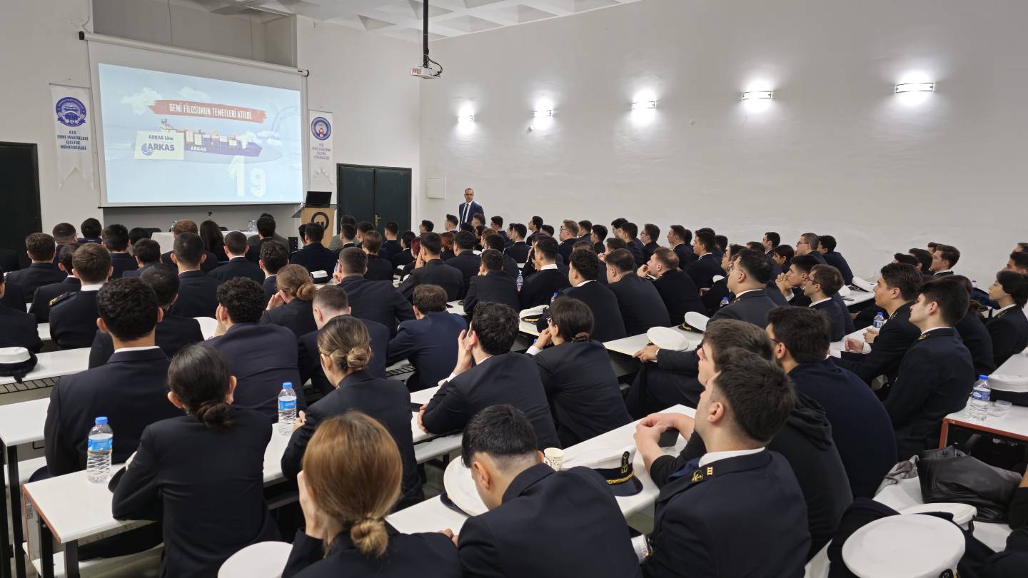 Etkinliğe, Arkas Denizcilik Personel Müdürü Ferit Gökdeniz katıldı. Sunumda, Arkas Denizcilik’in tarihçesi aktarılırken, filoda yürütülen genişletme çalışmaları ve geleceğe yönelik planlar hakkında öğrencilerimize bilgi verildi. Etkinlik, plaket takdimi ile tamamlandı.