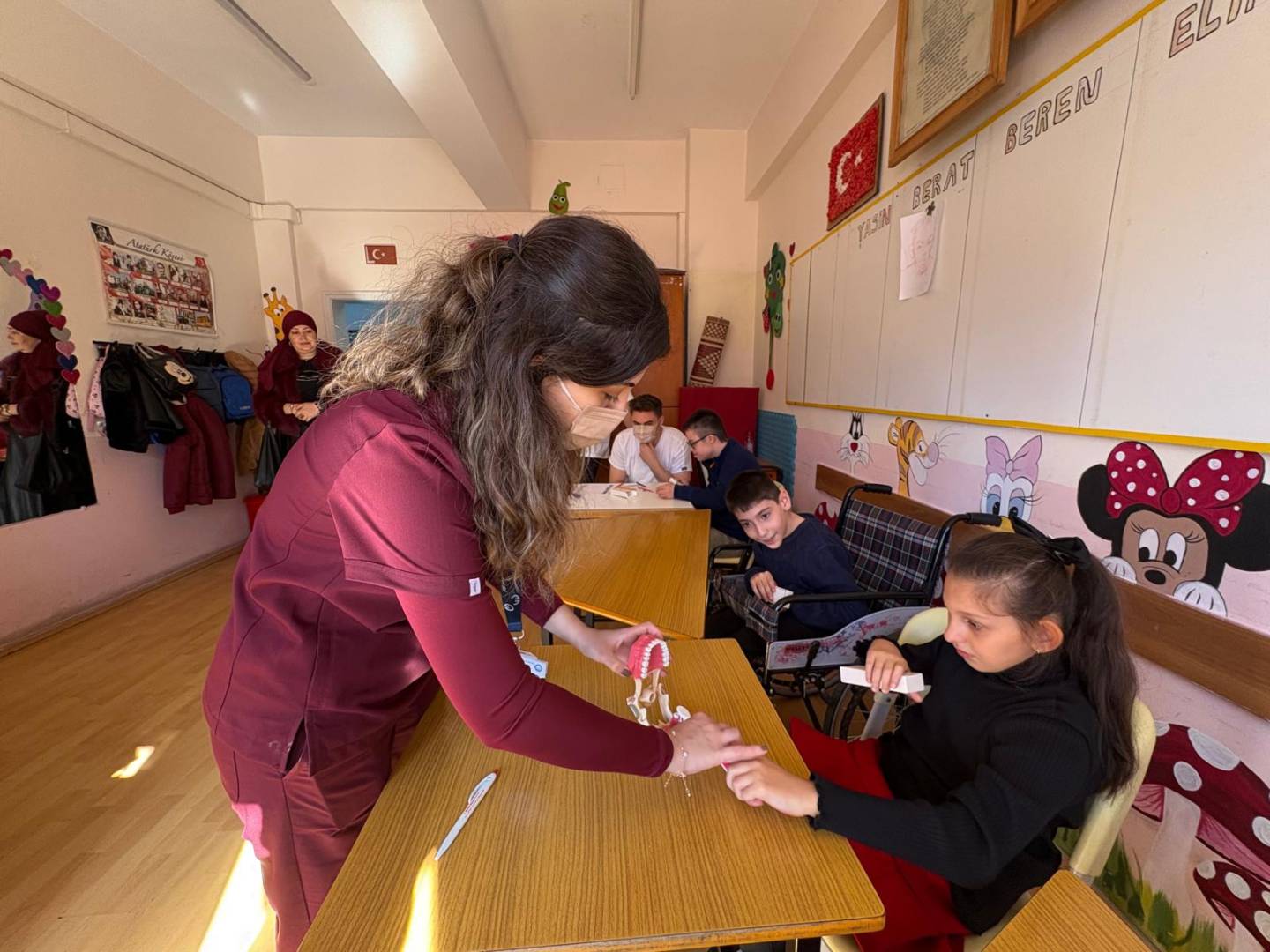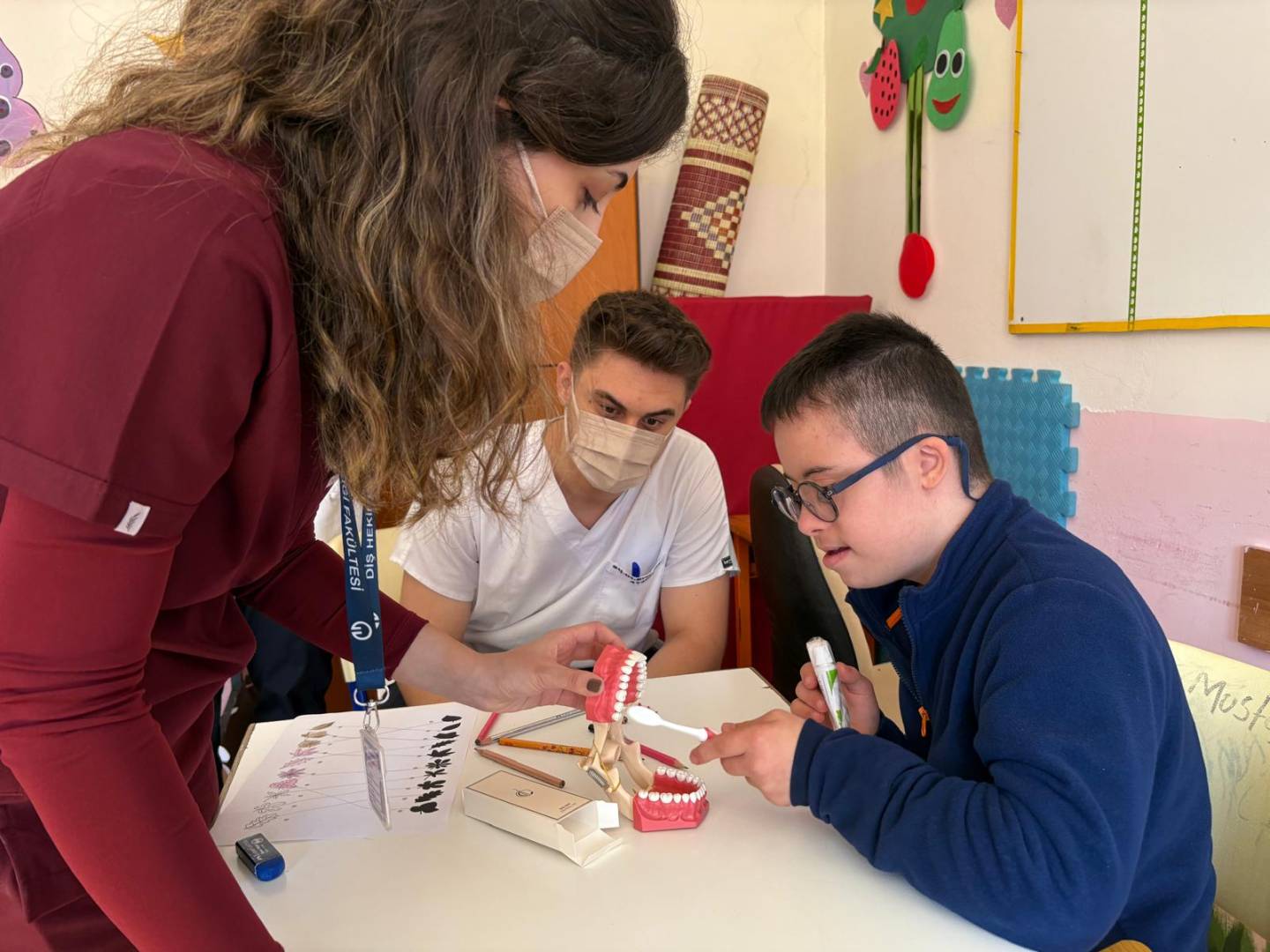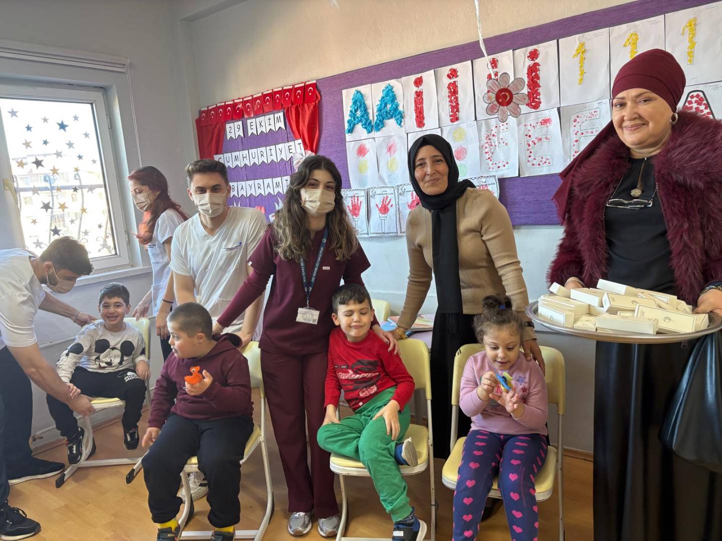 Fakültemiz ile Trabzon Kent Konseyi arasında imzalanan iş birliği protokolü kapsamında yürütülen sosyal sorumluluk faaliyetleri çerçevesinde, bu kez Erdoğdu İş Eğitim Uygulama Okulu ziyaret edilerek ağız ve diş sağlığı taraması gerçekleştirildi. Etkinlikte özel gereksinimli öğrencilerin ağız ve diş sağlıkları değerlendirildi, koruyucu ağız ve diş sağlığı konusunda bilgilendirme yapıldı. Öğrencilere doğru diş fırçalama teknikleri gösterilerek, bireysel hijyen alışkanlıklarını destekleyici materyaller dağıtıldı. Fakültemiz öğretim elemanları ve öğrencilerinin gönüllü katılımıyla gerçekleşen etkinlikte, toplumun farklı kesimlerine ulaşarak ağız ve diş sağlığı bilincini artırma hedefi bir kez daha vurgulandı. Fakültemiz, önümüzdeki dönemde de benzer sosyal sorumluluk faaliyetlerini sürdürerek, toplumun her kesiminde ağız ve diş sağlığı farkındalığını güçlendirmeyi amaçlamaktadır.