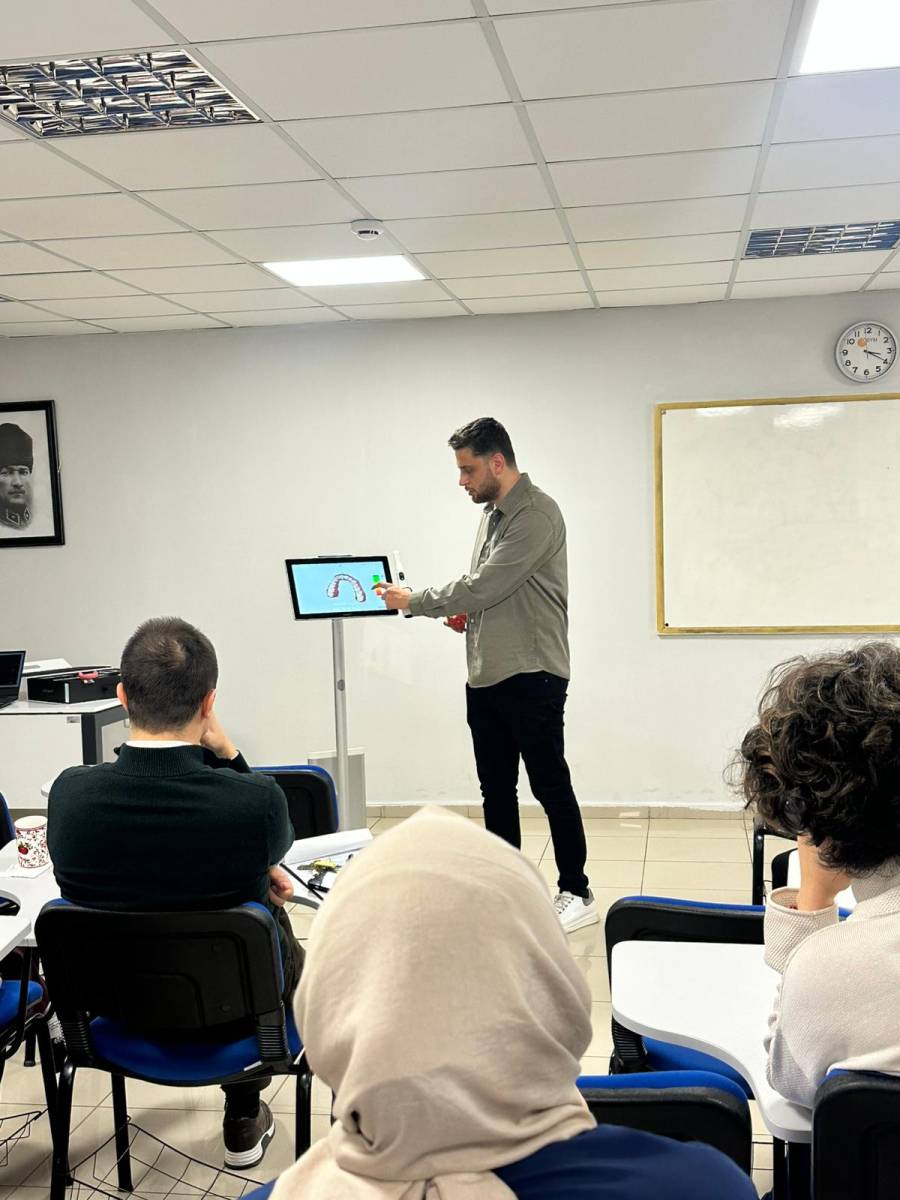 Eğitim süreci boyunca; teknoloji ve yenilik vizyonumuz doğrultusunda, TRIOS 5 ekosisteminin sunduğu dijital hassasiyet katılımcılara uygulamalı olarak gösterilmiştir. Geleneksel yöntemlerin ötesine geçen bu inovatif yaklaşım sayesinde; hatasız dijital ölçü alımı ve modern CAD/CAM protokolleri ile restorasyon süreçlerinde hız ve estetik başarıyı artıran teknik detaylar paylaşılmıştır. Fakültemiz, dijitalleşmenin getirdiği bu teknolojik avantajları eğitim müfredatımızın ve klinik hizmetlerimizin ayrılmaz bir parçası haline getirmeye devam edecektir.