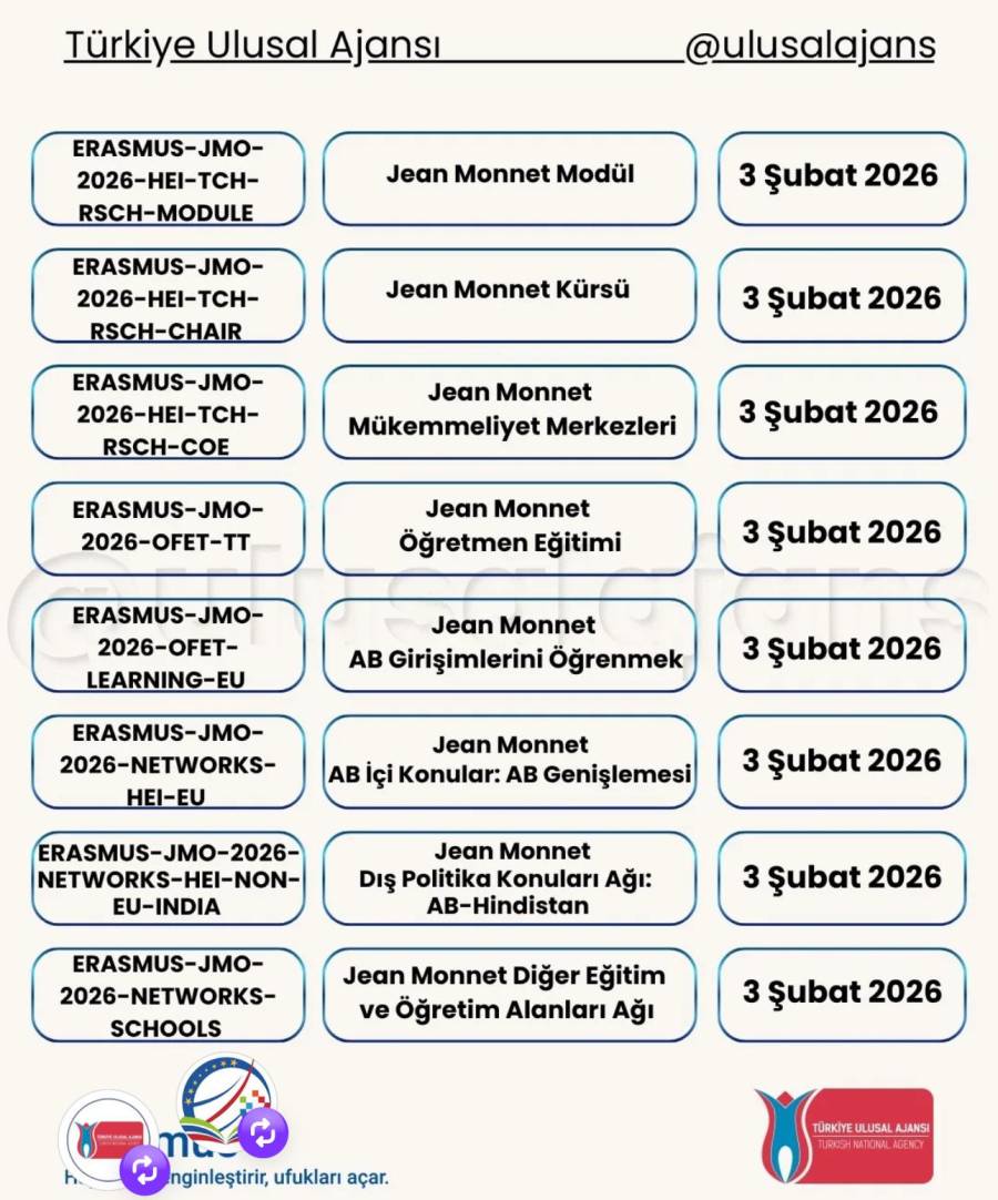 Jean Monnet Projeleri Başvuru Takvimi Türkiye Ulusal Ajans'ı Tarafından Yayınlandı