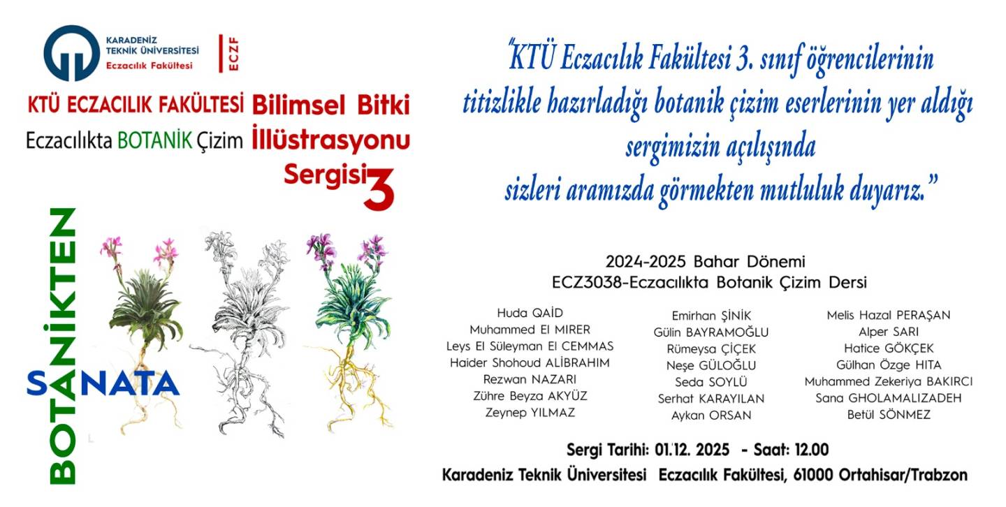 Sergi, botanik çizimin eczacılık alanındaki önemini vurgularken aynı zamanda bilimin sanatla buluştuğu yaratıcı bir öğrenme deneyimi sunmayı amaçlıyor. Tüm akademik birimlerimizin katılımına açık olan etkinlik, fakültemiz fuaye alanında ziyaret edilebilir.