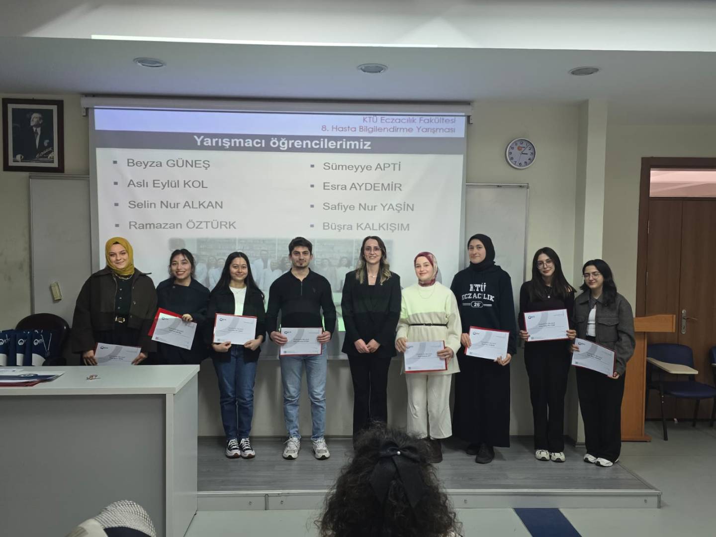 Birinci olan öğrencimiz Selin Nur ALKAN, Fakültemizi 24-26 Nisan 2025 tarihlerinde Ankara’da düzenlenecek olan 22. Ulusal Hasta Bilgilendirme Yarışması’nda temsil edecektir. Öğrencimizi tebrik ediyor, 22. Ulusal Hasta Bilgilendirme Yarışması’nda başarılar diliyoruz.
