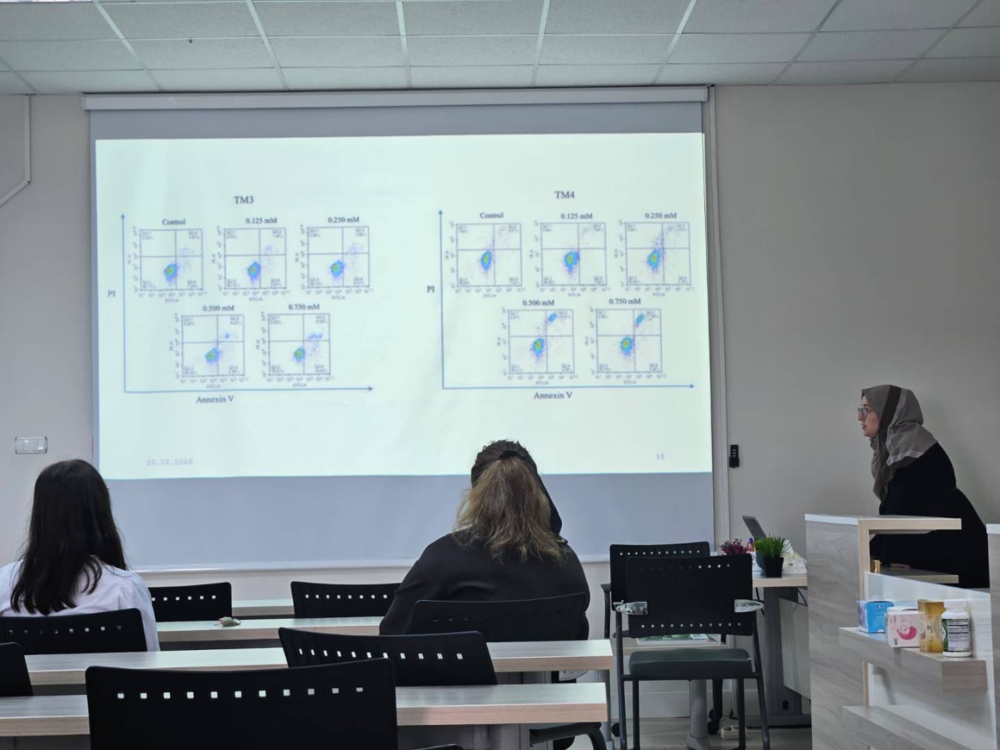 25 Şubat 2026 tarihinde Fakültemiz Farmasötik Toksikoloji Ana Bilim Dalı'ndan Arş. Gör. Yasemin ALTUN ALİ'nin sunumuyla makale saati etkinliği gerçekleştirildi. Sunumun ardından katılımcılarımız, makale hakkında bilimsel değerlendirmeler yaptılar.