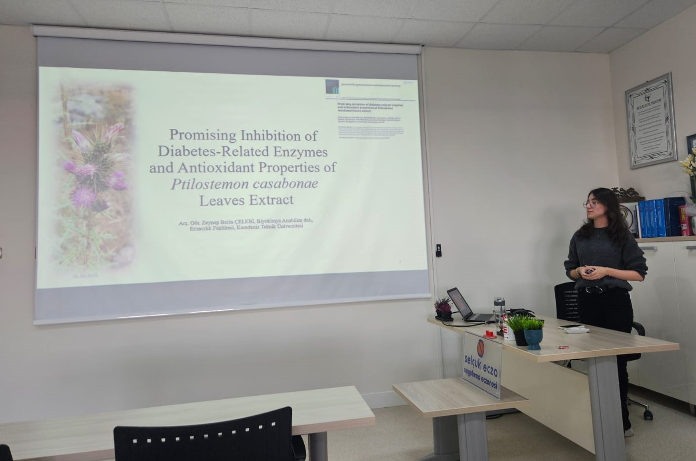 30 Ekim 2025 tarihinde Fakültemiz Biyokimya Ana Bilim Dalı'ndan Arş. Gör. Zeynep Berin ÇELEBİ'nin sunumuyla makale saati etkinliği gerçekleştirildi. Sunumun ardından katılımcılarımız, makale hakkında bilimsel değerlendirmeler yaptılar.
