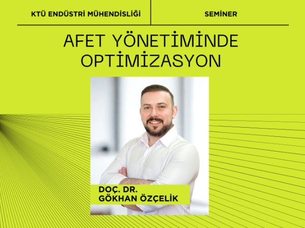 Endüstri Mühendisliği Bölümü öğretim üyemiz Doç. Dr. Gökhan Özçelik, afet yönetiminde optimizasyon ve belirsizlik altında karar verme konularında bir seminer gerçekleştirdi.