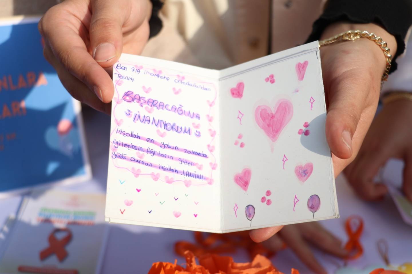 Öğrenciler, hediyelerin yanı sıra içerisinde destek mesajlarının yer aldığı mektup ve kartları, Karadeniz Teknik Üniversitesi (KTÜ) Farabi Hastanesi'ne giderek lösemi tedavisi gören çocuklara ulaştırdı.