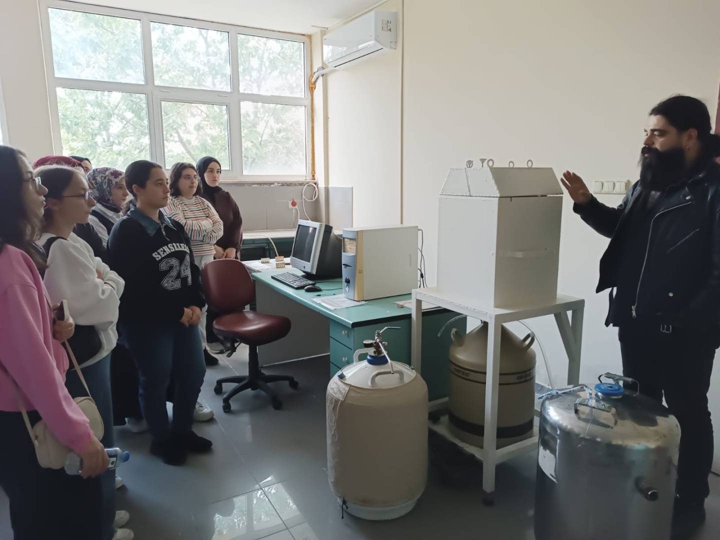 Ziyaret kapsamında öğrencilere, bölümün akademik çalışmaları, laboratuvar olanakları ve araştırma alanları hakkında bilgi verildi.