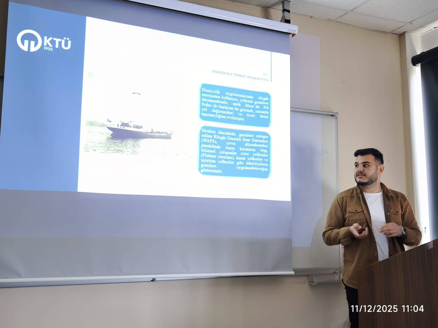 Bölüm Öğretim Elemanımız Arş. Gör. Miraç LEYLEK GIM5010 Seminer Dersi kapsamında "Denizcilikte Yenilenebilir Enerji Kaynakları Kapsamında Hibrit Rüzgâr Türbinlerinin Gemilere Entegrasyonu" başlıklı seminer sunumunu 11.12.2025 tarihinde gerçekleştirmiştir.