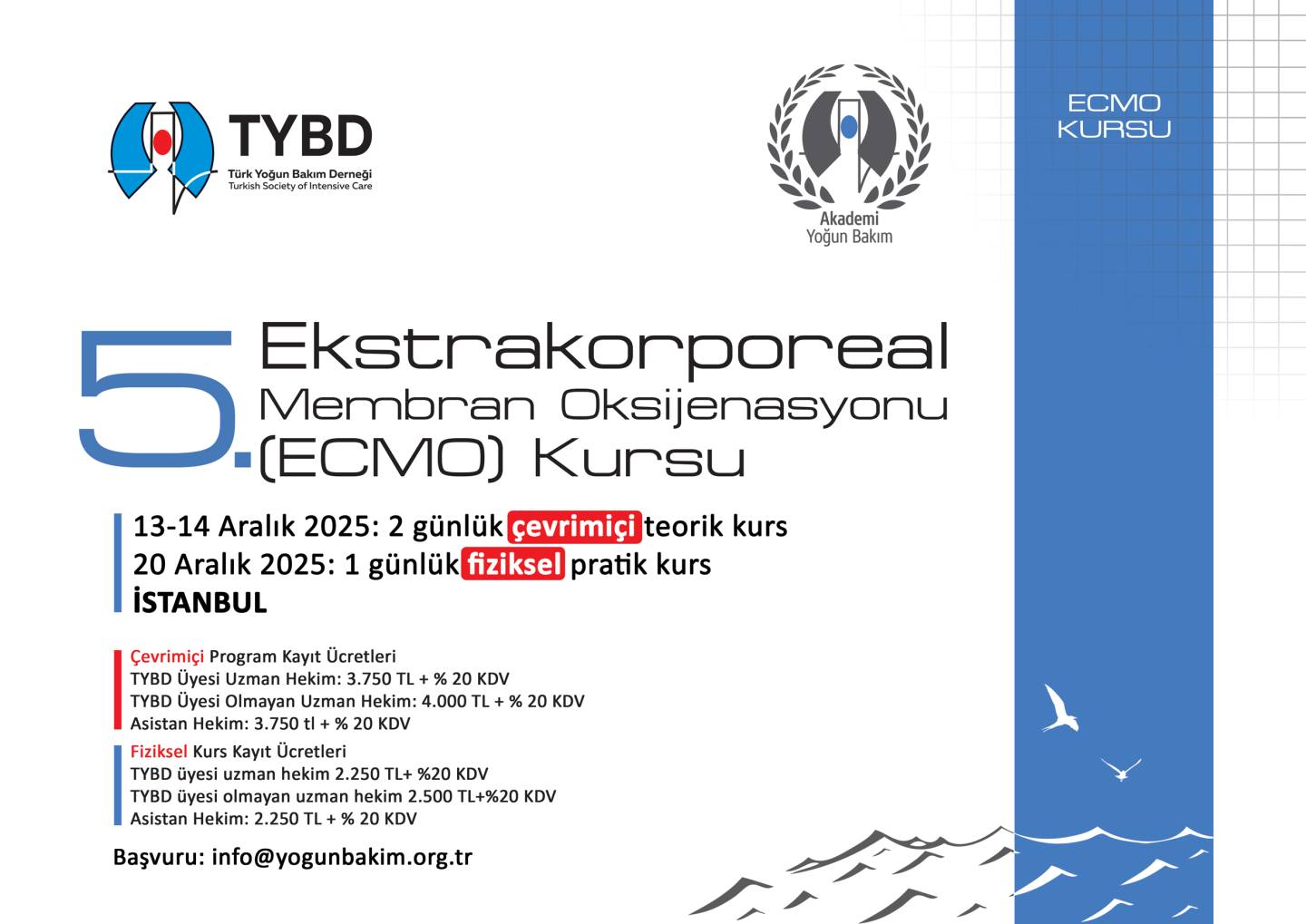 5. Ekstrakorporeal Membran Oksijenasyonu (ECMO) Kursu 13-14 Aralık (Online) - 20 Aralık (Fiziksel)