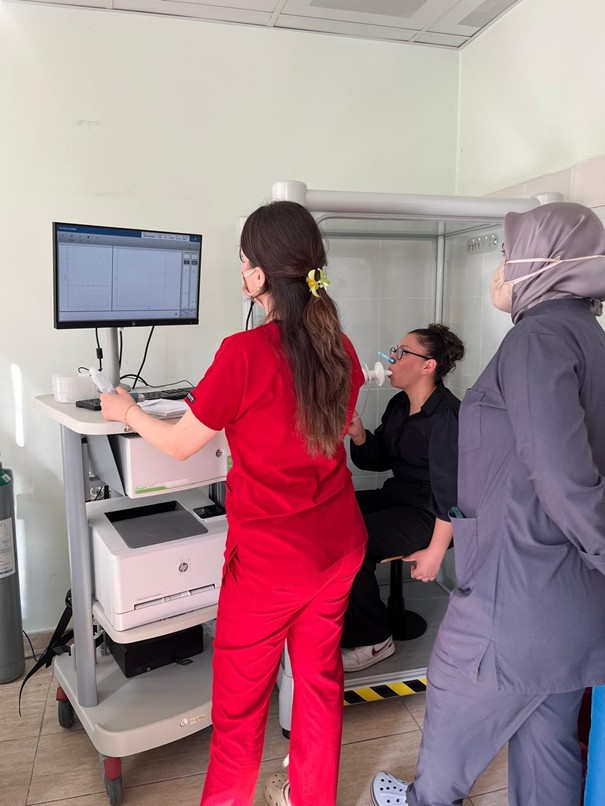 All devices are calibrated daily, and all test procedures are performed in accordance with ERS/ATS guidelines. Standardized test protocols are used routinely. The following photographs illustrate our PFT and BPT laboratory environment, equipment, and staff performing the procedures.