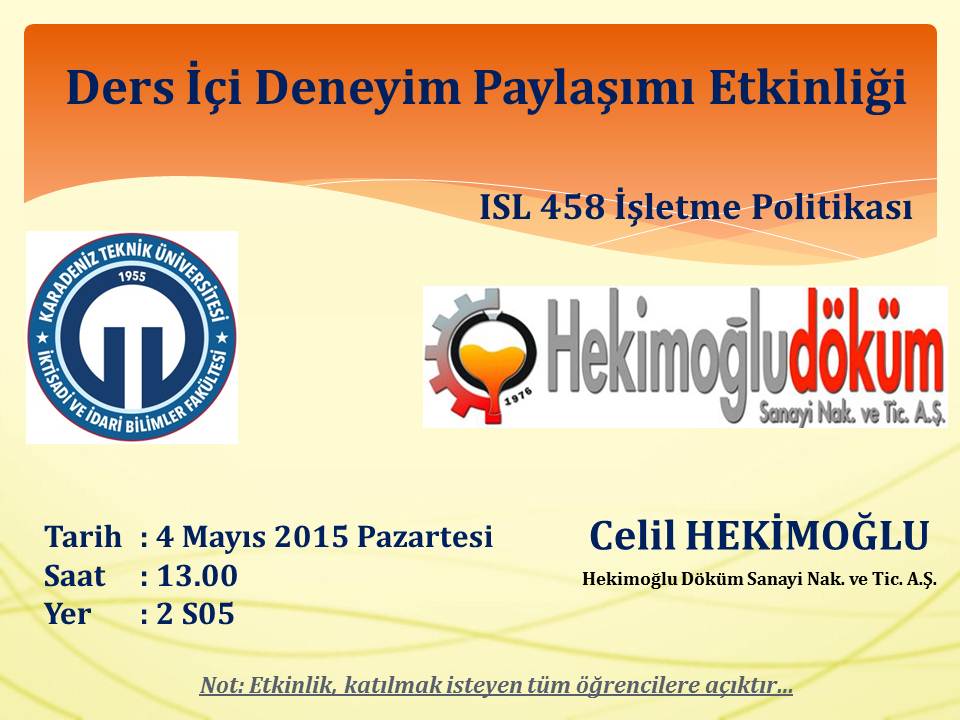 Ders İçi Deneyim Paylaşımı "hekimoğlu Döküm Sanayi Nak. ve Tic. A.ş."