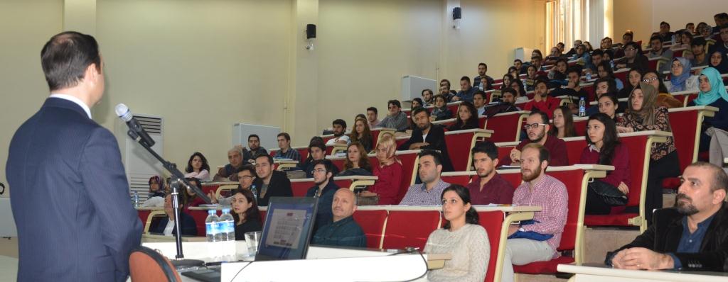 T.C. Batum Başkonsolosu Yasin TEMİZKAN' ın Verdiği "Dış İşleri Bakanlığında Staj ve Kariyer İmkanları Konulu Seminer" 4 Kasım 2015 Çarşamba Günü Saat 11.00' de Fakültemiz M. Yazıcı Amfisinde Yapıldı.