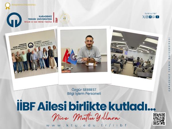 Fakültemiz Bilgi İşlem Sorumlusu Özgür SERBEST'in doğum günü, Dekanınımız Dekan Yardımcılarımız, Fakülte Sekreterimiz ve idari personelimizin katılımıyla kutlandı.
